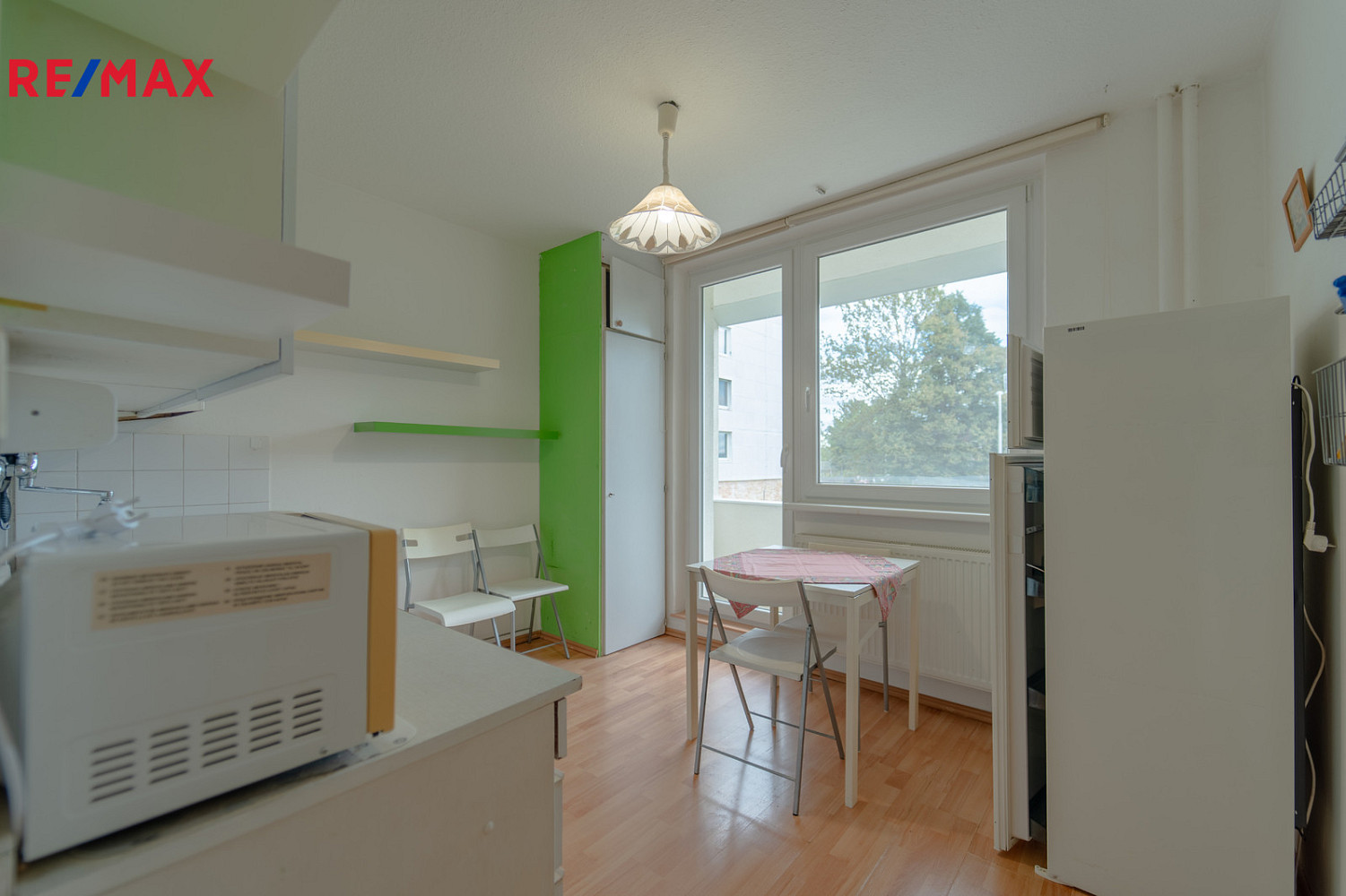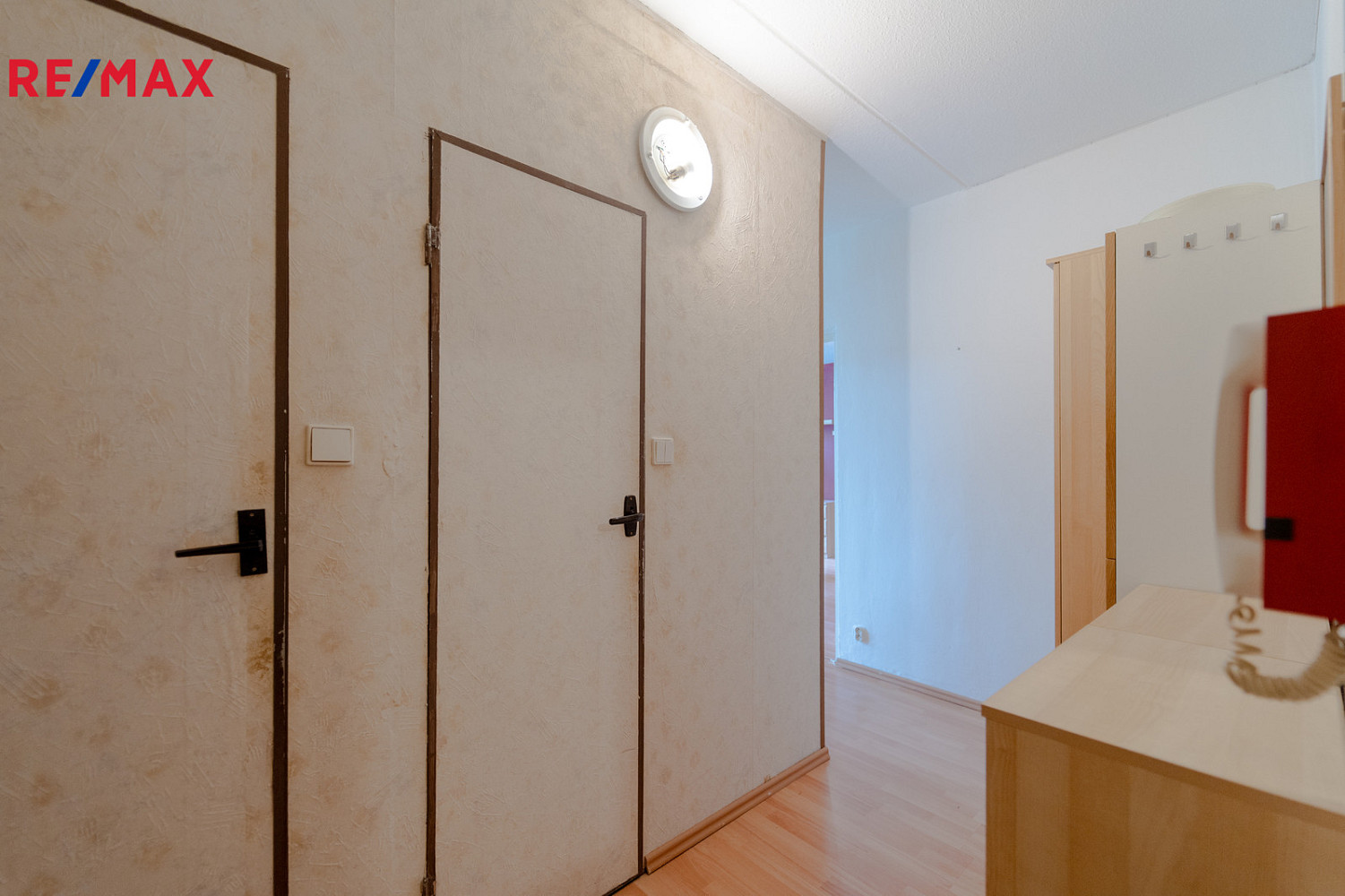 Po vstupu do bytu se nacházíme v předsíni, ze které vedou vstupy na samostatné WC, koupelny, kuchyně, kde se nachází linka a plynový sporák s elektrickou troubou a dále do pokoje.