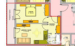 Dispozice: obývací pokoj s kuchyní, ložnice, koupelna, terasa