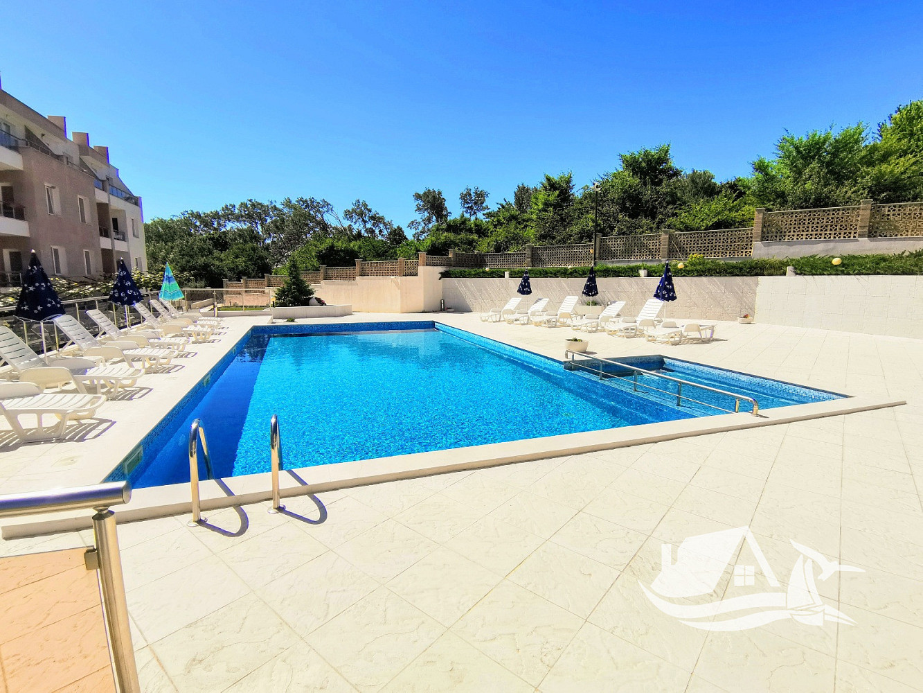 Komplex má uzavřený areál s bazénem, zahradou, parkováním a zónou s grilem a posezením pod pergolou. Atmosféra je zde klidná, přirozená a ideální pro odpočinek. V docházkové vzdálenosti najdete restaurace, obchod i písečnou pláž – vše, co potřebujete pro pohodlný život u moře.