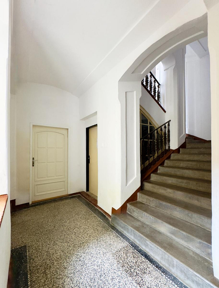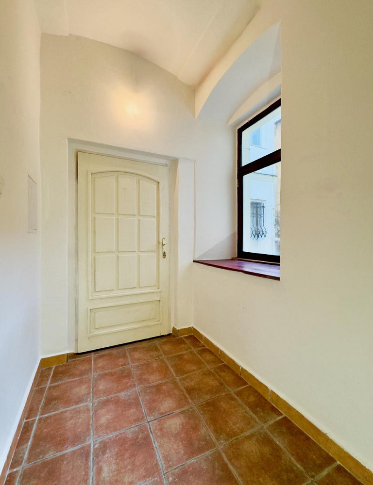 Byt disponuje dvěma vchody původním a druhým, který byl dodatečně vybudován do obývací části. Toto řešení umožňovalo využití prostoru pro bydlení i podnikání díky výbornému umístění v centru města.