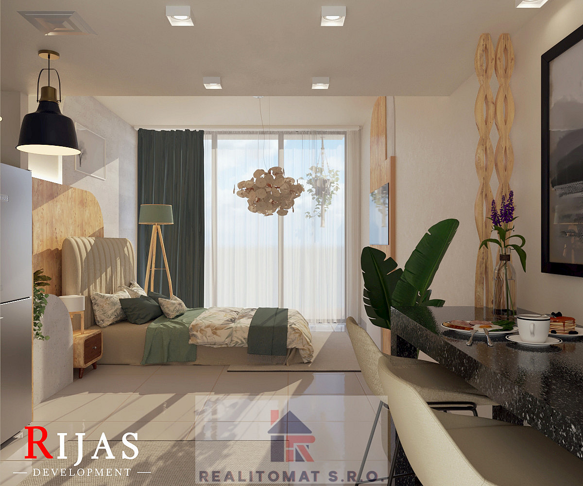 Některé projekty mají splátkové kalendáře např. 20% rezervace, 50% po dokončení projektu, následně 1% po dobu 30 měsíců, kdy již pronajímáte krátkodobě Váš byt, takže Vám stačí pouze 2 mil. Kč na investici....