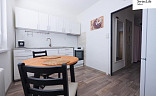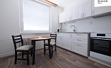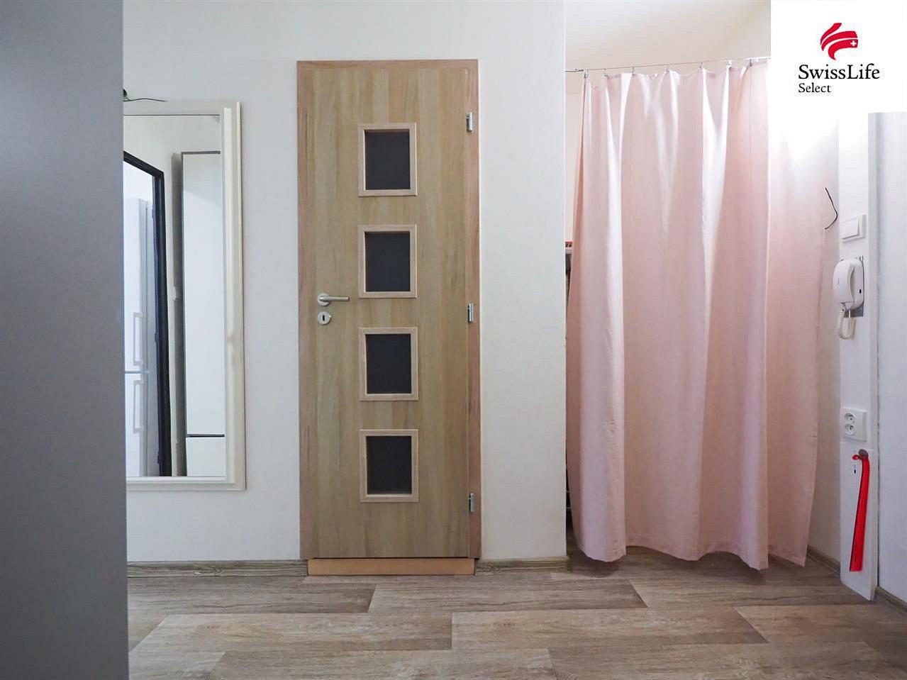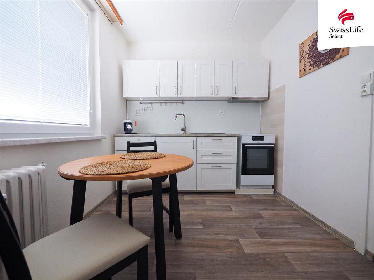 Nabízíme exkluzivně k prodeji byt v osobním vlastnictví o dispozici 1+1 (s lodžií) situovaný v 8. nadzemním podlaží revitalizovaného panelového domu. Celková podlahová plocha bytové jednotky včetně příslušenství je 41,2 m². V této výměře není započtena plocha lodžie 3,2 m², která k jednotce patří. Příslušenstvím bytu je sklepní kóje umístěná v 1. PP domu o ploše 1,5 m². Dispoziční řešení bytu: předsíň (5,4 m²), kuchyně (8,6 m²), pokoj se spacím koutem (20,5 m²), koupelna + WC (4,0 m²), komora (1,2 m²). Byt je po celkové rekonstrukci včetně změny původní dispozice (realizace v roce 2019): vyzděné bytové jádro, nové rozvodové sítě, podlahová krytina (keramická dlažba/lino), interiérové dveře, kuchyňská linka včetně integrovaných elektrospotřebičů, sanitární vybavení/keramické obklady. Interiér je plně vybaven. Ústřední dálkové vytápění a ohřev teplé vody s centrálním zdrojem. Bytový dům prošel komplexní revitalizací: výměna oken a vstupních portálů, rekonstrukce střechy, zateplení fasády (kontaktní zateplovací systém se strukturální omítkou), přístavba zasklených lodžií, modernizace výtahů, výměna domovních rozvodů. Výhodná poloha nemovitosti v klidné části města, s dostatkem zeleně, optimální dopravní dostupností a občanskou vybaveností (MŠ, ZŠ, dětské hřiště, park v sousedství domu, MHD, síť obchodů a služeb).