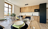 Dumrealit. cz Vám zprostředkuje prodej apartmánů na náměstí Sv. Vavřince v Horní Blatné, které se nachází v blízkosti několika lyžařských areálů jako je Plešivec, Potůčky nebo Klínovec. Apartmán číslo 5. se nachází v prvním patře, je o velikosti 31 m s výhledem na náměstí a kostel Sv. Vavřince. Dispozice bytu 1+KK. Všechny apartmány jsou vybaveny sanitární keramikou v koupelnách, sprchovým koutem Walk-in, podlahovou krytinou a to v kombinaci velkoformátové dlažby a plovoucí podlahy v dekoru dřeva, obložkami, interiérovými a vstupními dveřmi a kompletní přípravou na osazení kuchyňské linky. Ke každému apartmánu patří jedno soukromé parkovací místo hned u domu a jedna sklepní kóje, vše je již započítáno v uvedené ceně. Součástí jsou také nádherné společné prostory a to včetně sklepního prostoru s možností posezení. Vytápění apartmánů je elektrické s dálkovým ovládáním s připojením na Wi-Fi. V apartmánovém domě se nachází 12 jednotek od 1+KK až po 3+KK různých podlahových výměr. Několik apartmánů je již prodáno. Izolant obvodových stěn 16-18cm polystyrenové dílce a 28cm minerální vlna v podkrovní části domu. Nemovitost se nachází přímo na náměstí s výhledem na hory a kostel Sv. Vavřince. Koupě apartmánu je ideální také jako investice, kdy jsou Krušné hory celoročně navštěvovány turisty a Horní Blatná patří svým umístěním mezi nejvíce vyhledávané. V blízkosti apartmánu se nachází Blatenský vrch, Vlčí jámy a mnoho turistických a cyklo tras. Nemovitost s možností odpočtu DPH z uvedené kupní ceny. Fotky se zařízením a kuchyňskou linkou jsou z referenčního bytu číslo 10. Doporučuji nezávaznou prohlídku objektu s možností vybrat si právě ten VÁŠ apartmán. Uvedené fotografie s jíž osazenou kuchyňskou linkou a vybavením jsou z referenčního bytu č. 10. Ev. číslo: 651370.
