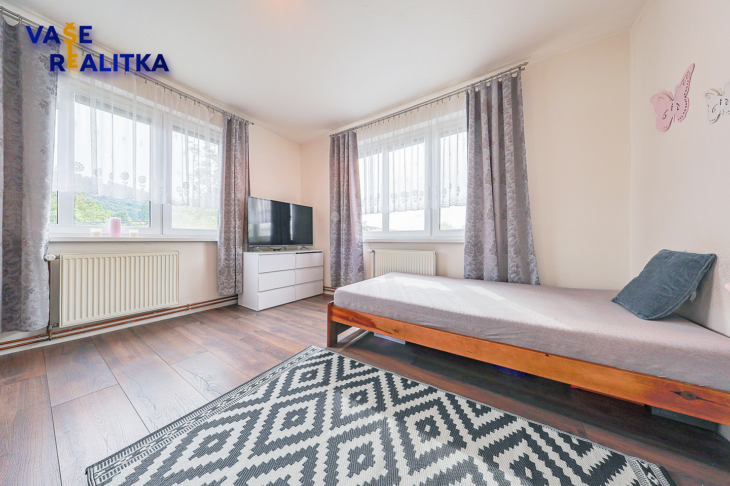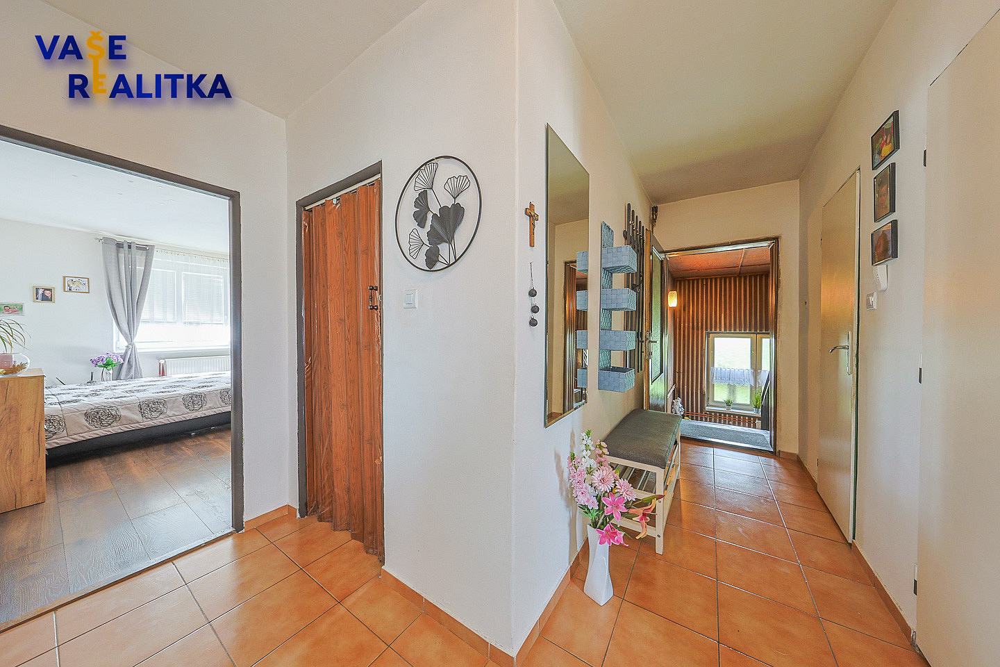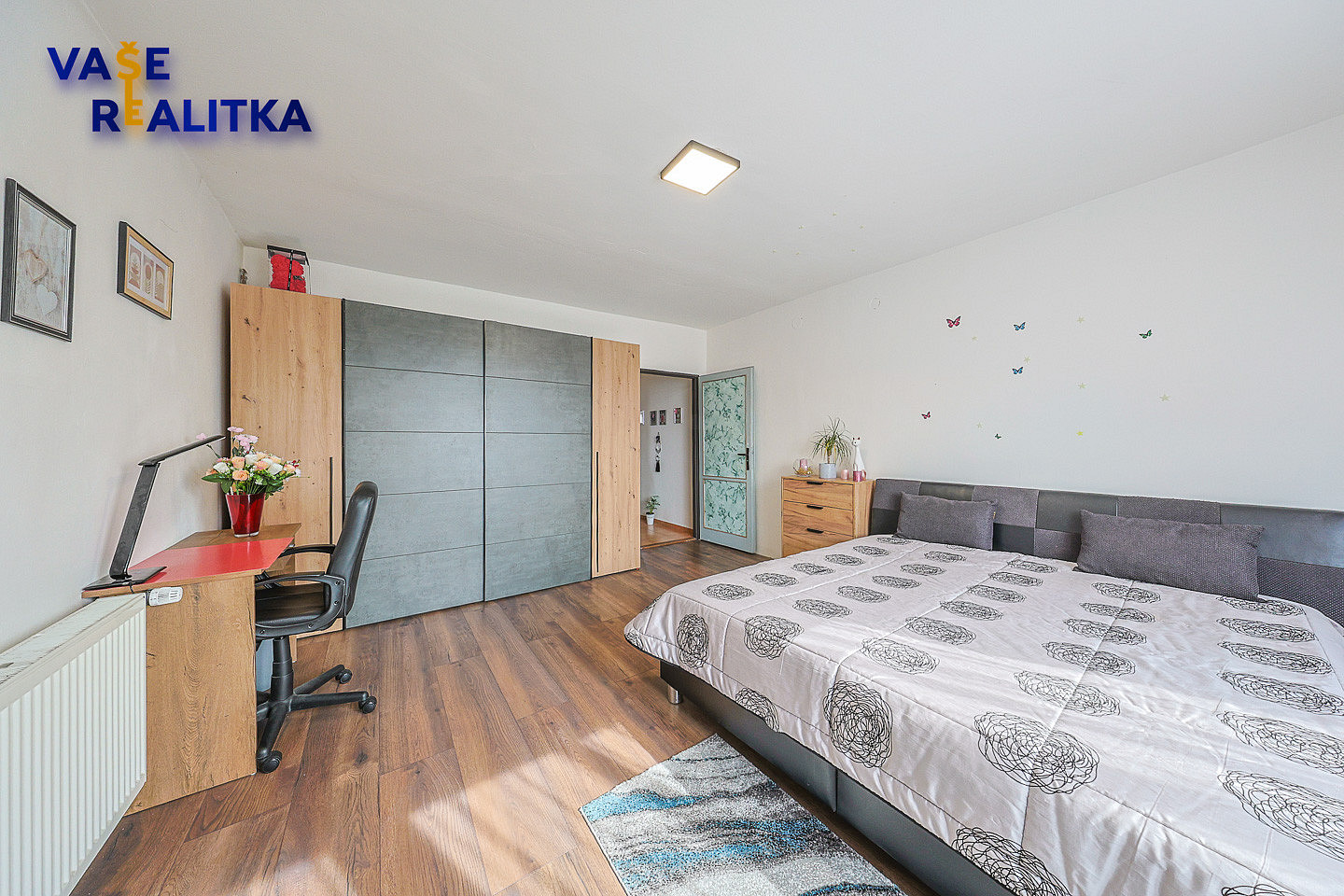 Nabízím k prodeji byt o dispozici 3+1 s balkonem, který se nachází ve 2. nadzemním podlaží rodinného domu se dvěma samostatnými bytovými jednotkami. K bytu náleží velká chodba a kotelna v mezipatře, garáž pro osobní automobil umístěná v přízemí domu s vjezdem ze zahrady, tři sklepní místnosti v suterénu, pozemek zahrady a ostatní plocha o celkové výměře 252 m².