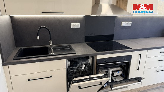 V bytě je nová kuchyně, koupelna i podlahy, vše připravené k okamžitému nastěhování. K bytu náleží sklepní kóje a možnost využití společné kolárny.