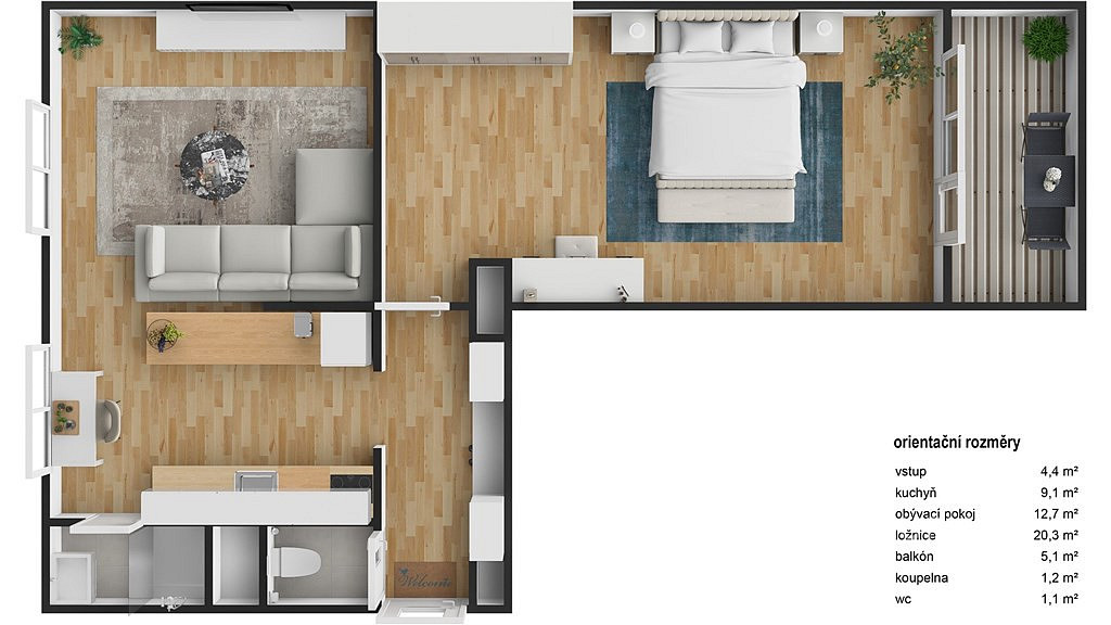 K bytu náleží prostorný balkón s nádherným výhledem, ideální místo pro odpočinek a relaxaci. V bytě je navíc klimatizace, která zajišťuje komfortní prostředí i v horkých letních dnech.