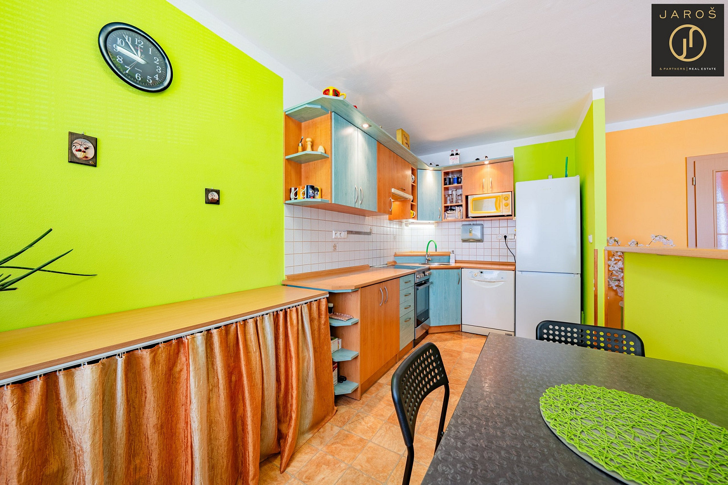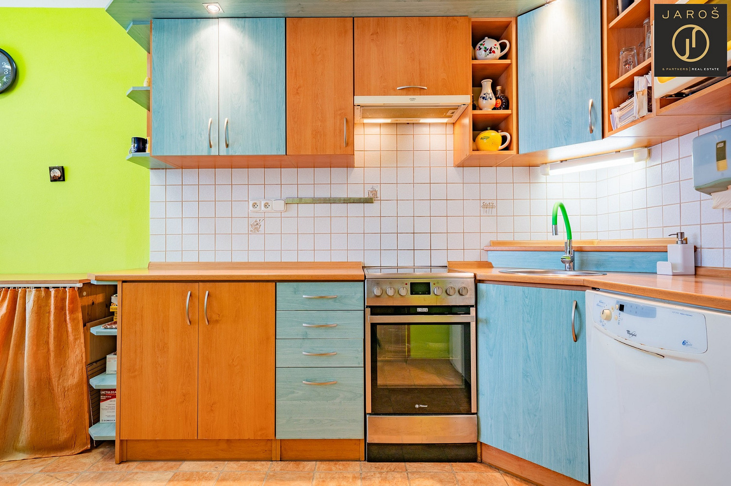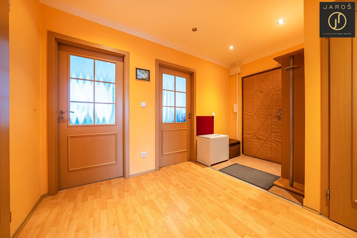 Byt prošel modernizací a zaujme vás svou skvěle řešenou dispozicí: obývací pokoj se vstupem na lodžii, praktická kuchyně s jídelním koutem a dva klidné pokoje (ložnice a dětský pokoj nebo pracovna). K dispozici je také velkorysá vstupní chodba, komora v bytě, další komora na patře a sklepní koje.