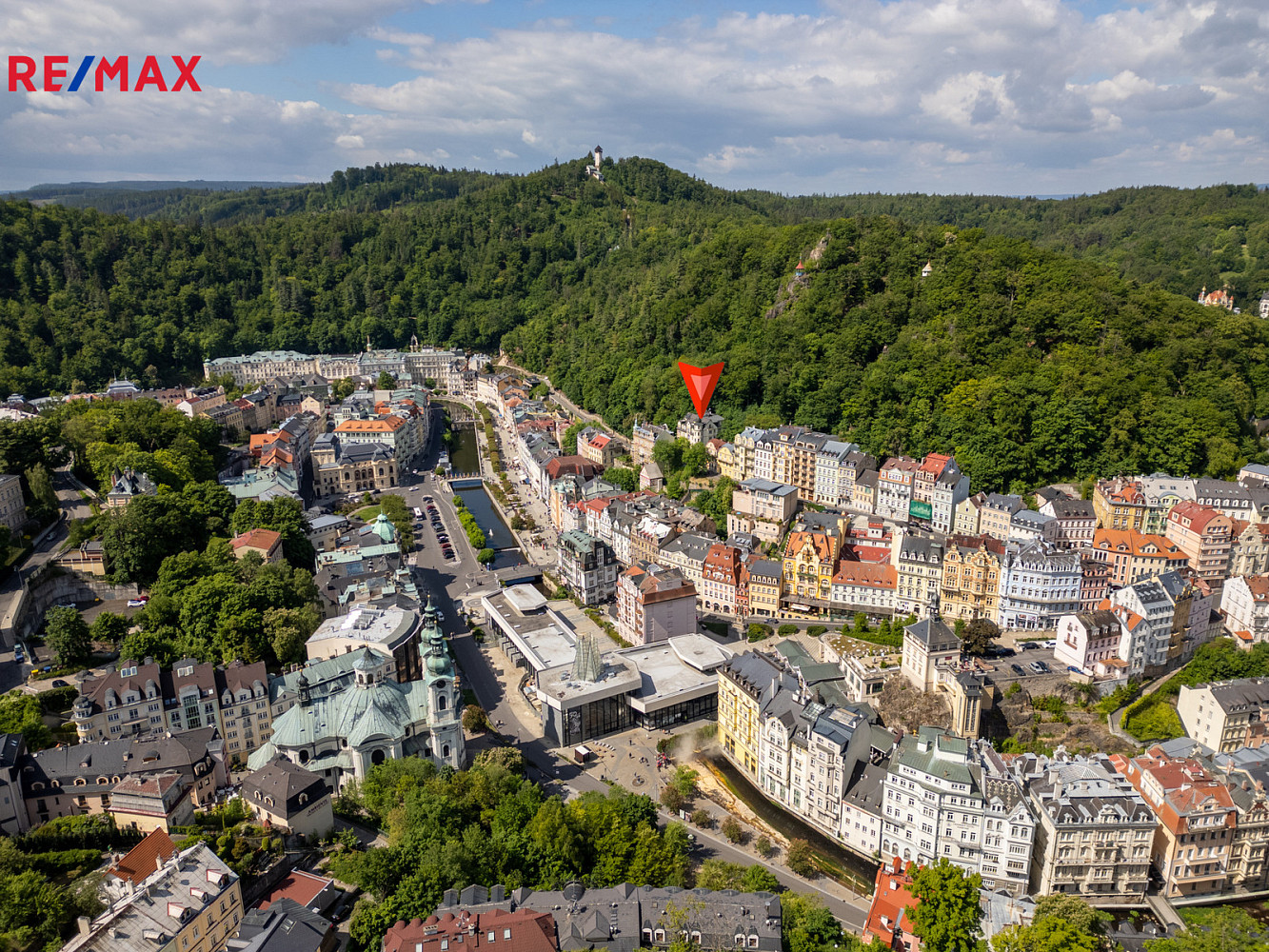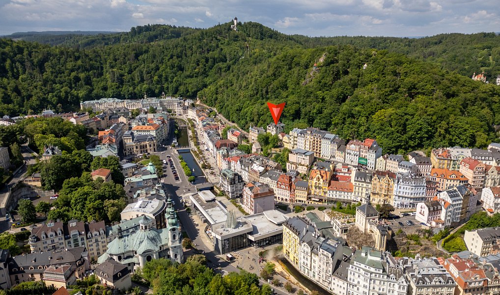 Nachází se ve 3. nadzemním podláží s výtahem a balkonem, jen pár minut chůze od Vřídelní kolonády, obchodů, restaurací i lázeňských pramenů.