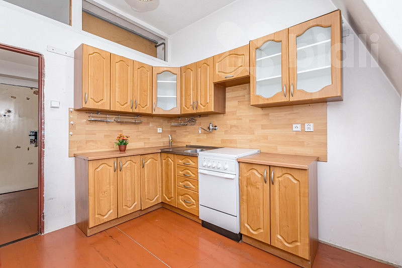 Byt se nachází v posledním patře, což zajišťuje naprostý klid bez sousedů nad hlavou. K bytu náleží sklepní kóje a samostatná uzamykatelná garáž, která je součástí prodeje. To výrazně zvyšuje komfort bydlení i úložné možnosti.