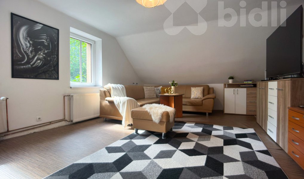 Kromě téměř 75m² prostoru v dispozici 2+1 získáte navíc i komoru na mezipatře.