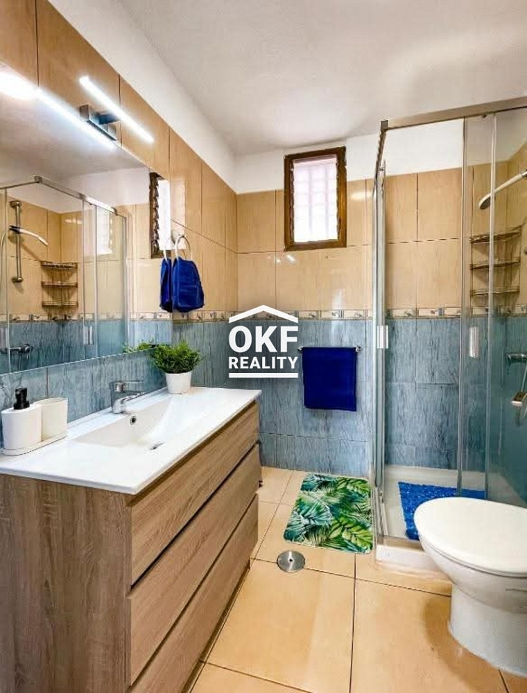 Tento jedinečný apartmán Vám dispozičně nabízí 2 ložnice, 1 koupelnu, kuchyň, prostorný obývací pokoj se sedačkou, kterou lze rozložit na manželskou postel. Dvě velké terasy s výhledem na moře, město a hory, což jistě oceníte.