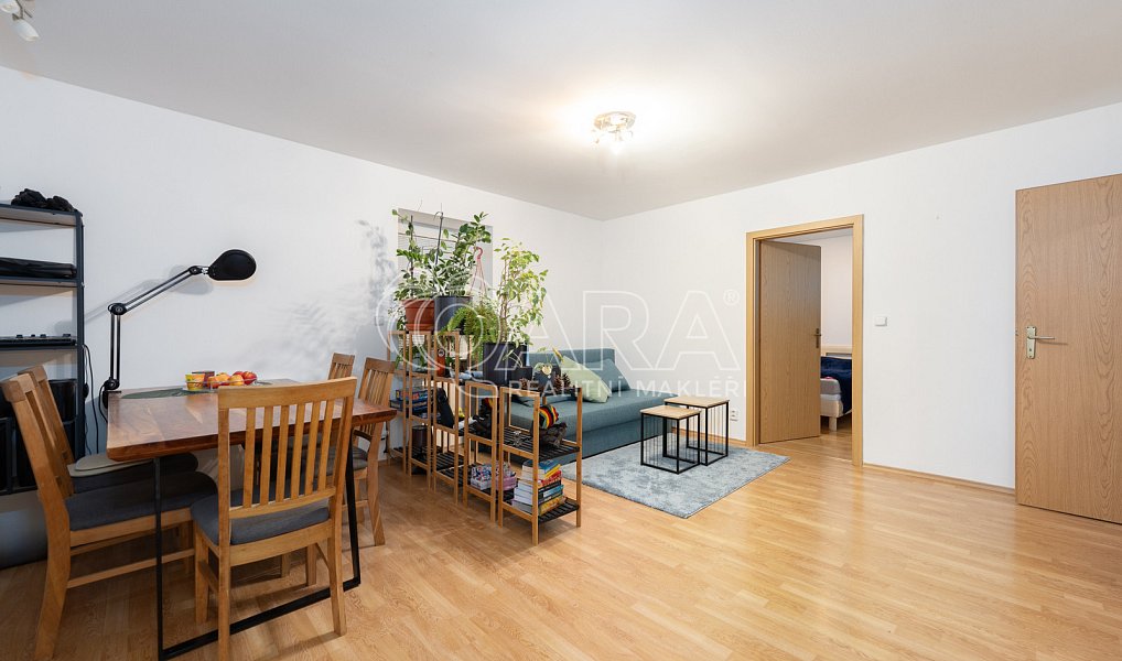 Dispozice bytu je tvořena předsíní, ze které je vstup do koupelny se sprchovým koutem a na samostatné WC. Dále pak do obývacího pokoje spojeného s kuchyní a na konec se dostáváme do ne jen tak ledajaké ložnice, nalezneme zde totiž vstup na prostornou lodžii, kde nebudete mít problém umístit rozměrnější zahradní nábytek. K bytu náleží sklep a velkou výhodou je jedno soukromé parkovací místo přímo před domem.