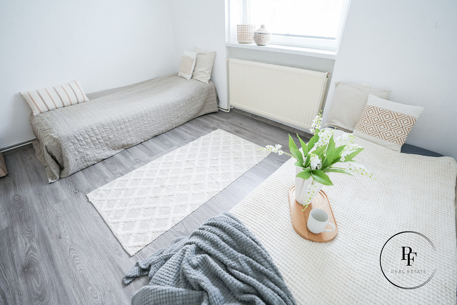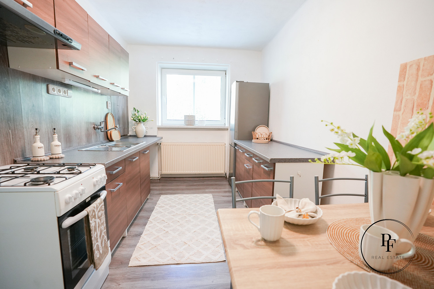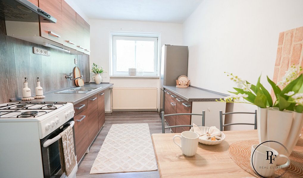 Byt má praktickou dispozici se dvěma neprůchozími pokoji, samostatnou kuchyní, koupelnou s walk in sprchou a oddělenou toaletou. Působí světlým a čistým dojmem a je připravený k okamžitému nastěhování.