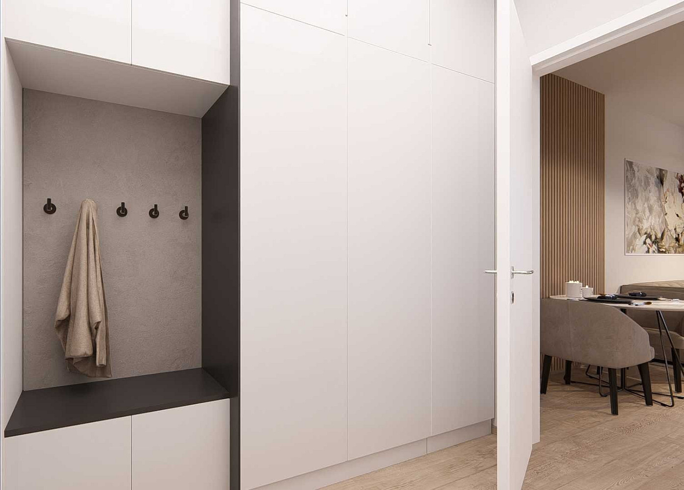 Jedna z posledních bytových jednotek o dispozici 1+kk v našem novém projektu, jehož výstavba je v plném proudu a dokončení je naplánováno na konec roku 2026.