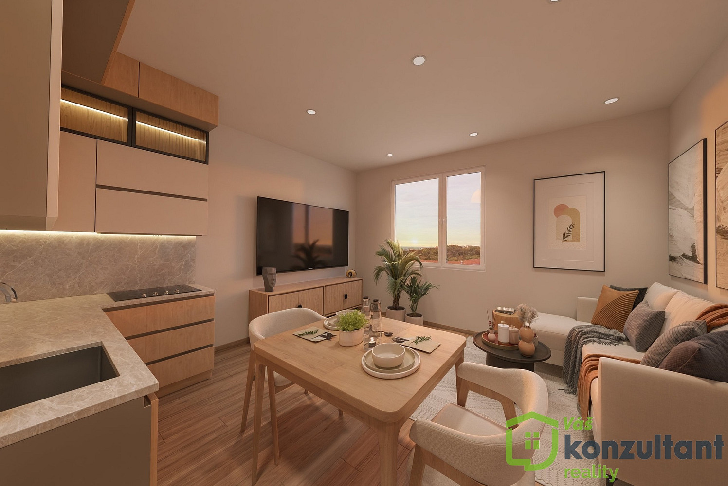 Představte si místo, kde máte vše potřebné na dosah, ale přitom zůstáváte v klidném prostředí obce obklopené přírodou. Právě takový je byt 2+1 o velikosti 31 m², který se nachází v 6. patře panelového domu v obci Mokrá-Horákov, nedaleko Brna. Byt je v původním, ale zachovalém stavu a představuje ideální příležitost pro ty, kdo hledají startovací bydlení nebo investici s potenciálem. Jednoduchou úpravou dispozice může vzniknout moderní byt 2+kk, jak naznačuje přiložená vizualizace – otevřený obývací prostor s kuchyňským koutem by dodal interiéru více světla i vzdušnosti.