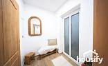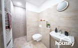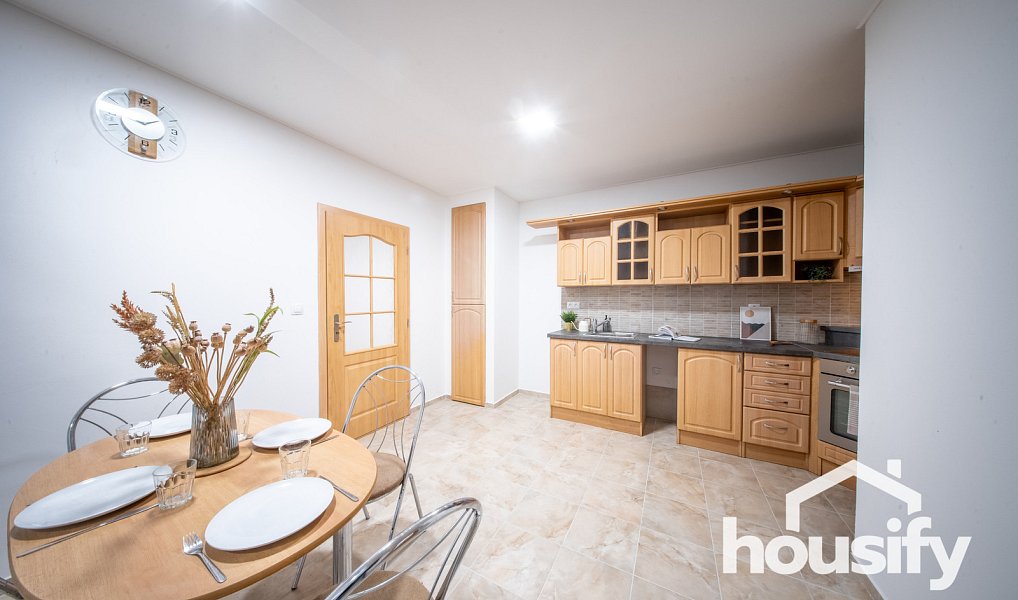 Hned při vstupu do bytu vás přivítá útulná předsíň, ze které se dostanete do koupelny s toaletou. Koupelna je vybavena moderním walk-in sprchovým koutem, otopným žebříkem a přípojkou na pračku, v koupelně se nachází také plynový kotel. Hlavní obytnou část tvoří prostorný obývací pokoj propojený s kuchyní. Kuchyňská linka je vybavena moderními spotřebiči, včetně trouby, indukční desky a digestoře. Obývací prostor působí díky zvýšenému stropu až do úvrati velmi vzdušně a moderně. Z obývacího pokoje pak vstoupíte do ložnice, která je situována tak, aby poskytovala maximální klid a výhled do zahrady.