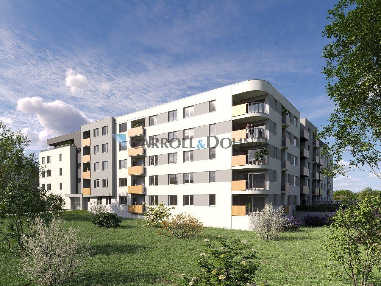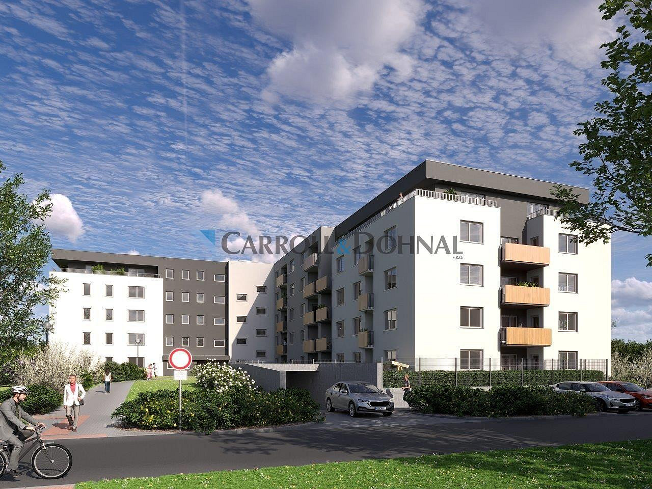 Nová budova spolu se stávajícími etapami vytváří moderní a příjemnou městskou zástavbu. Žijte v blízkosti přírody, zahrad a rybníka, přímo od domu vede cyklostezka.