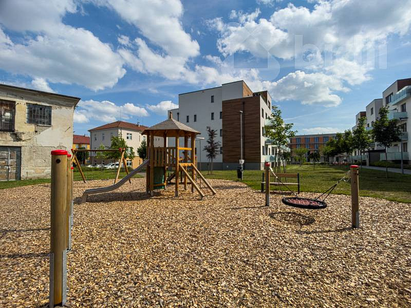 Byt je součástí uzavřeného a bezpečného areálu, který poskytuje klidné bydlení obklopené zelení. V areálu se nachází také soukromé dětské hřiště, ideální pro rodiny s dětmi.