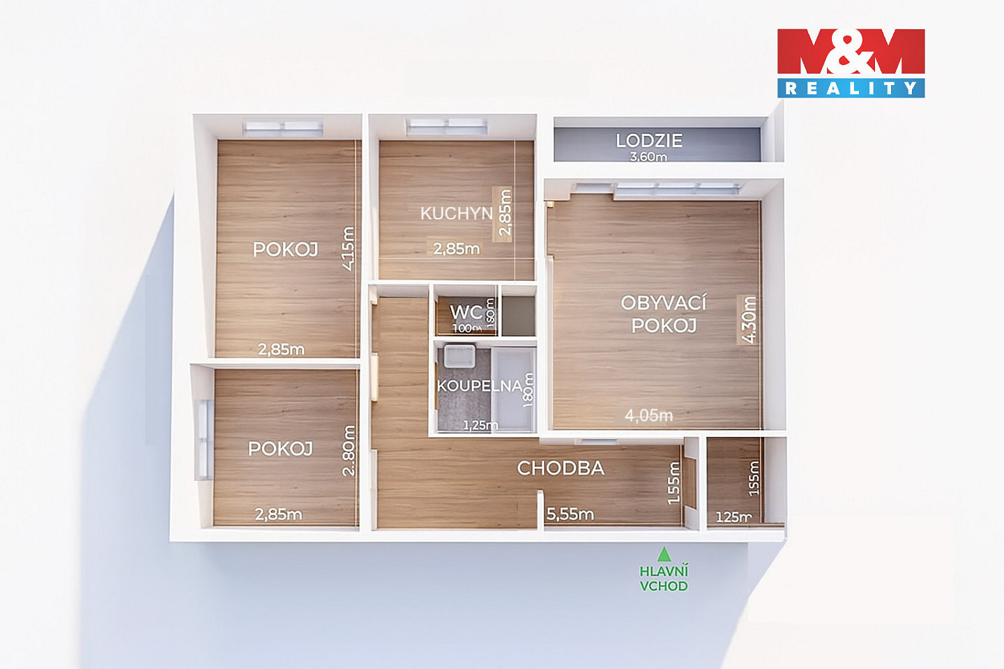 Nový interiér nabízí nadstandardní kuchyňskou linku, kvalitní vinylové podlahy, novou koupelnu se sprchovým koutem a samostatné WC. Kromě prostorného obývacího pokoje s lodžií nabízí tento byt také další dva neprůchozí pokoje a tím zajišťuje dostatek prostoru pro Vaše soukromí.