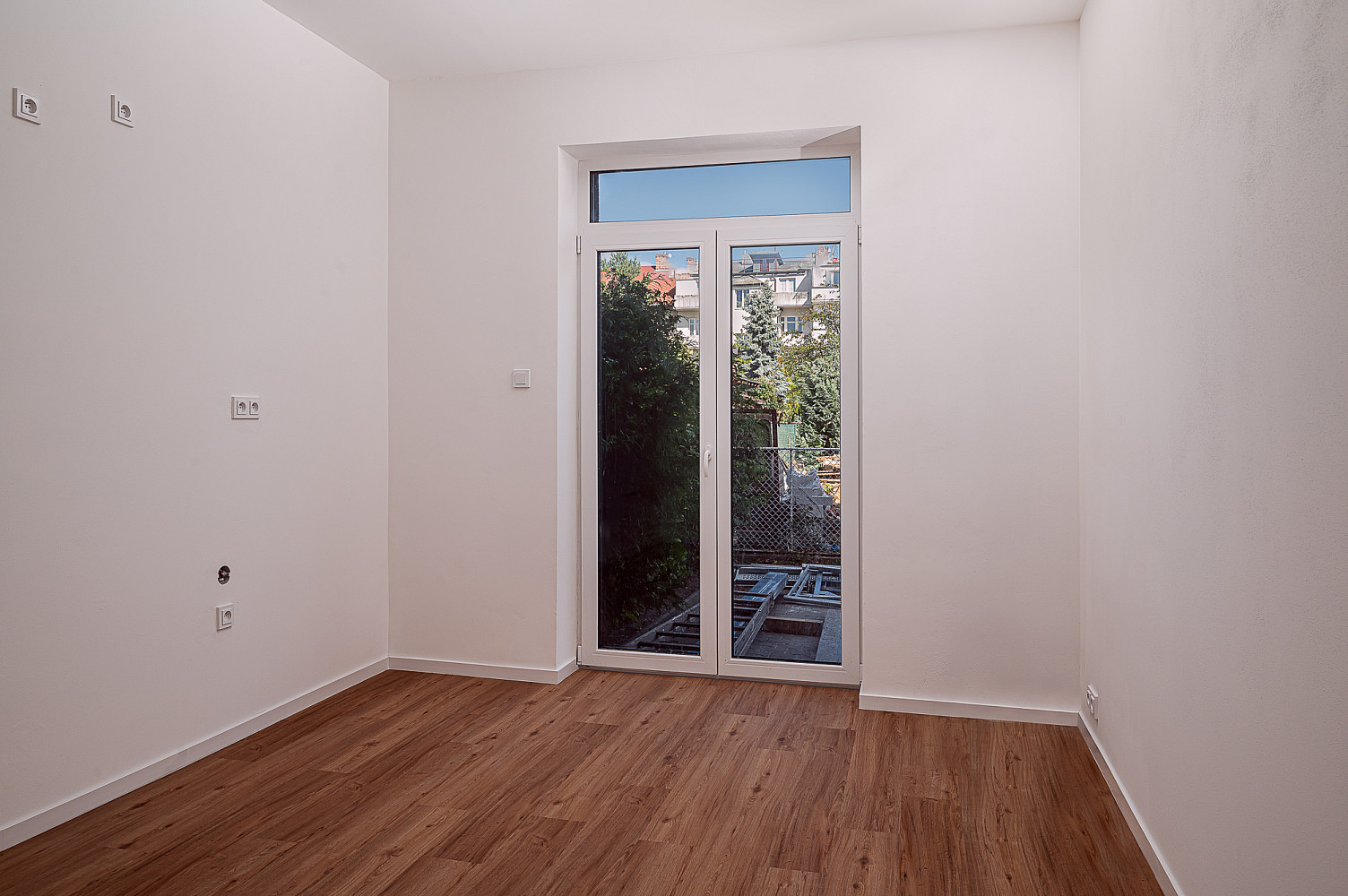 Byt s 38 m² podlahové plochy je po většinu dne příjemně prosvětlený. Ložnice je orientována na západ do klidné jednosměrné ulice s minimálním provozem, což zaručuje nerušené prostředí pro odpočinek. Kuchyně je situována na východ a je ní je přímý vstup na soukromou terasu o velikosti přes 24 m². Terasa navazuje na zahradu ve vnitrobloku, čímž přirozeně rozšiřuje obytný prostor a vytváří ideální místo k relaxaci. Komunitní zahrada ve vnitrobloku se vzrostlými stromy je tichá, nabízí dostatek soukromí a příjemnou atmosféru. Ideální podíl na zahradě je zahrnut v prodejní ceně bytu.