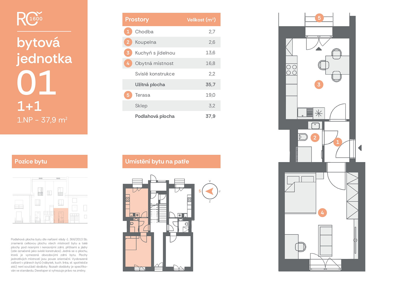Byt 1+1 se sklepem, soukromou terasou ve vnitrobloku, celk. plocha 69 m² – Češkova 1600, Pardubice