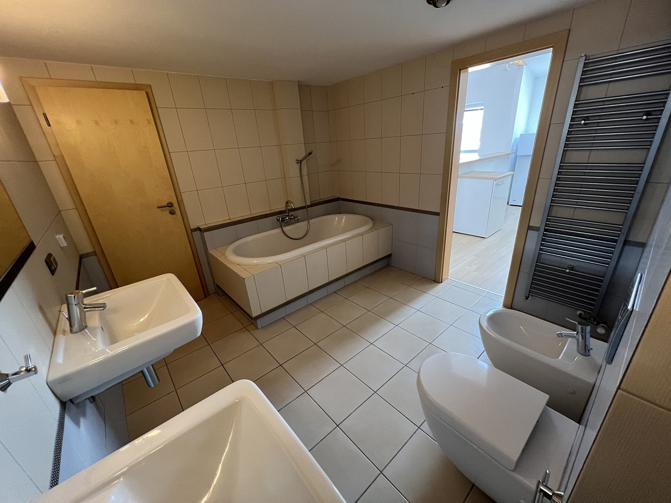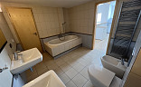 Prostorný obývací pokoj je spojený s moderní kuchyní, která je vybavena spotřebiči a také vestavěným trezorem. Tento prostor dopňuje francouzké okno svým výhledem na město. Nabízí ideální prostor pro společné chvíle s rodinou či přáteli. Koupelna, do které lze vstoupit jak z chodby, tak přímo z kuchyně poskytuje praktické řešení pro vaše pohodlí. Nabízí dvě umyvadla, prostornou vanu a kromě toalety také bidet. Dva samostatné pokoje mohou sloužit jako dětské pokoje, či ložnice pracovna nebo pokoj pro hosty.