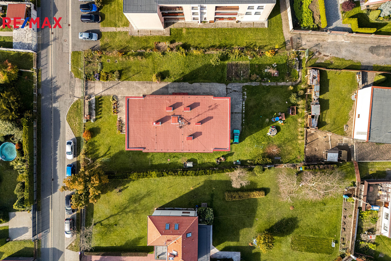 Součástí bytu je sklep o velikosti 2,55 m², navíc k dispozici uzamykatelná místnost pro uskladnění sezónních věcí. Obyvatelé mohou využívat oplocenou zahradu kolem domu – ideální pro odpočinek, vyžití dětí, zahradničení nebo rodinné posezení.