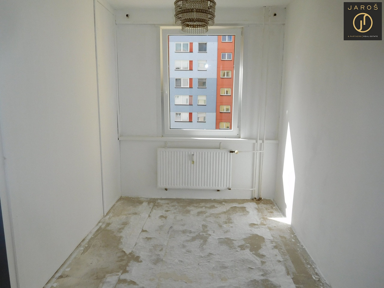 Prodej světlého, slunného bytu s lodžií o celkové ploše 86 m² (skutečná pochozí plocha 78 m²), v osobním vlastnictví. Dispozice bytu - vstupní chodba 4,4 m², hala chodby 10,1 m², obývací pokoj 20,7 m² s výstupem na lodžii 3,6 m², kuchyně 7,9 m², ložnice 12,3 m², pokoj 8,3 m² + pokoj 8,3 m², koupelna 2,9 m², WC 1,1 m². Nemovitost se nachází v 5. patře osmipatrového zatepleného panelového domu s výtahem. Byt je připraven k revitalizaci dle vašich představ moderního stylu bydlení. Okna plastová, jádro umakartové (možnost změny dispozice - velikosti sociálního zařízení či kuchyně). K bytu náleží sklep 3,8 m². Dům po kompletní rekonstrukci, zateplení - Energetická třída "C" - úsporná (nízké náklady na energie), nová fasáda, vchodové dveře a interiéry chodeb. Parkování je možné na parkovišti vedle domu nebo před domem. Případné jednání o ceně je možné.