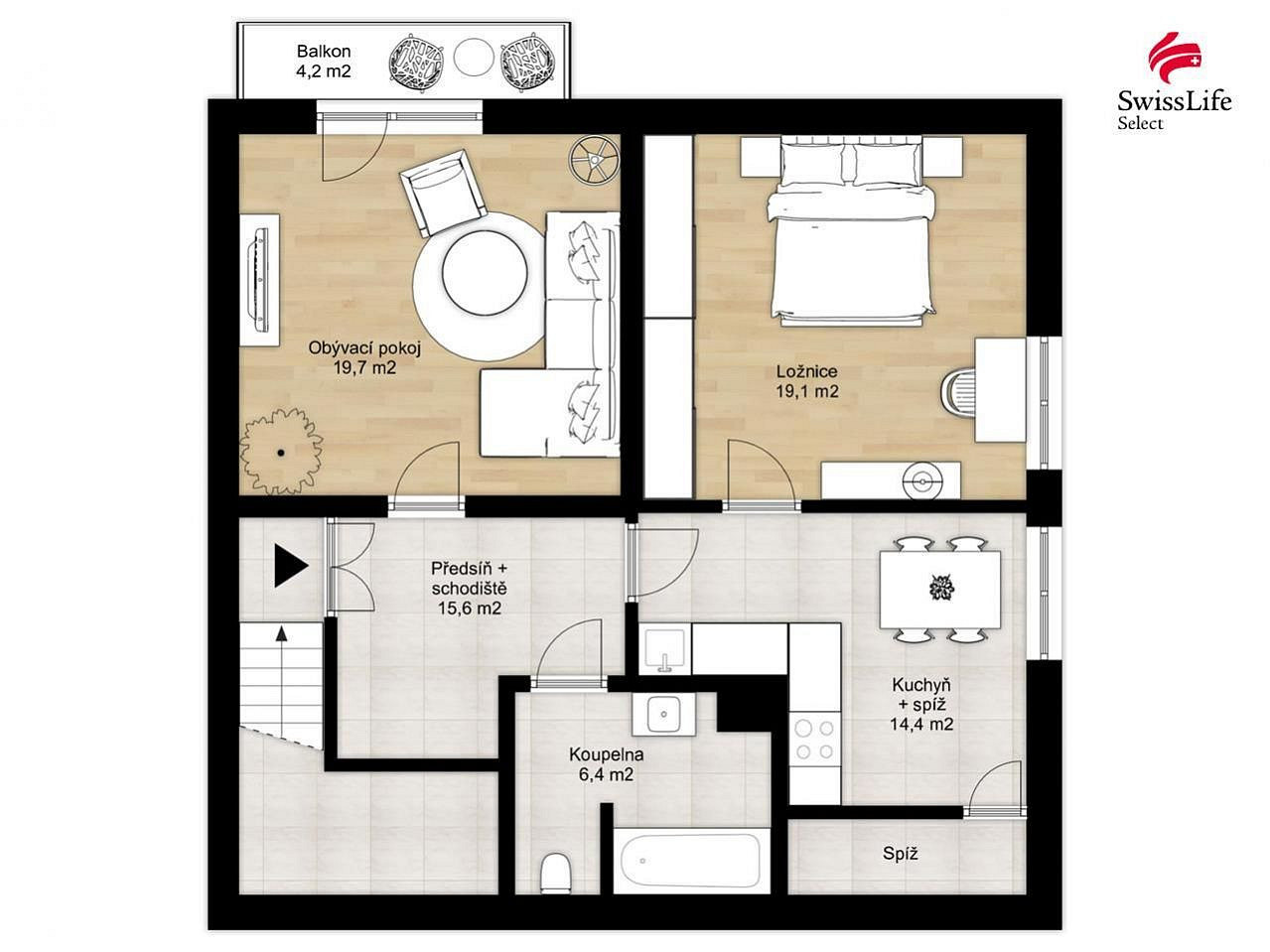 Vrchní byt o velikosti je prázdný, částečně zrekonstruovaný a čeká na nové obyvatele, kteří si jej dodělají podle vlastních představ a dodají mu tak své kouzlo. V bytě je potřeba dodělat kuchyň, koupelnu, položit podlahy, vymalovat no a můžete bydlet. Z jednoho pokoje je vstup na balkón, kam dopadá ranní slunce a kde si můžete při nádherném výhledu vychutnat první kávu dne.