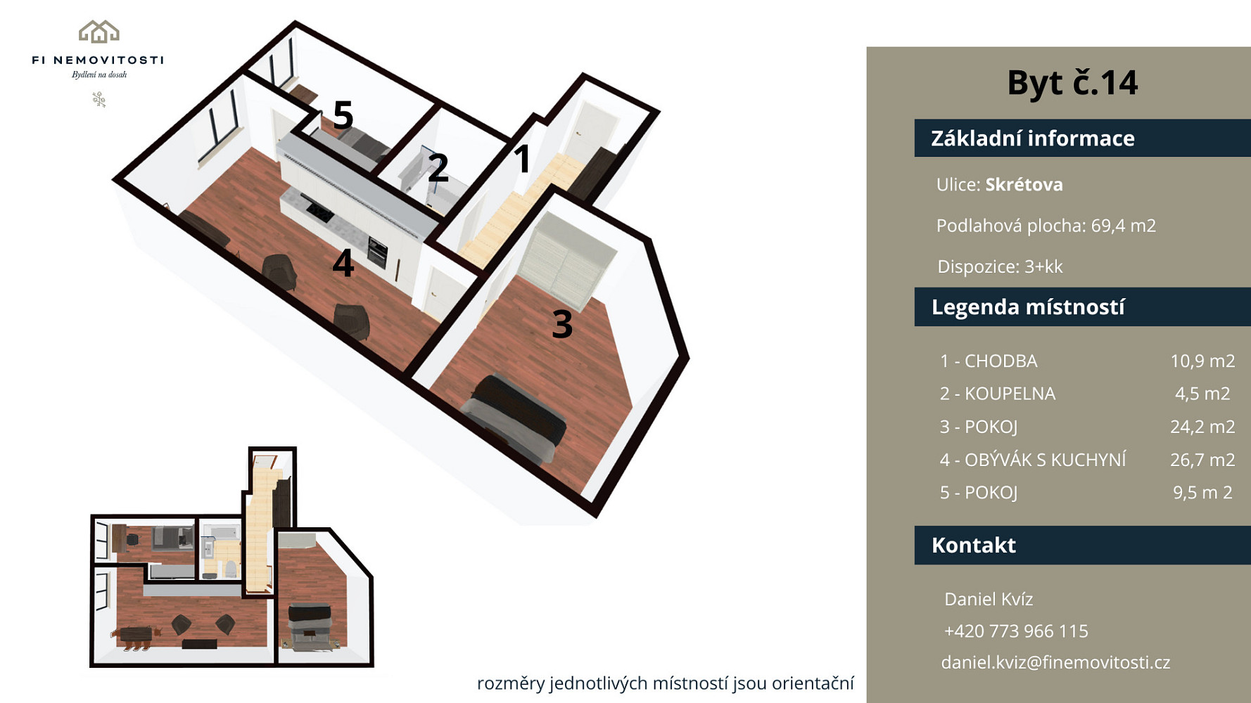 Nabízíme k prodeji podkrovní byt 3+kk o výměře 69,4 m² v ulici Skrétova, Plzeň – Jižní Předměstí.