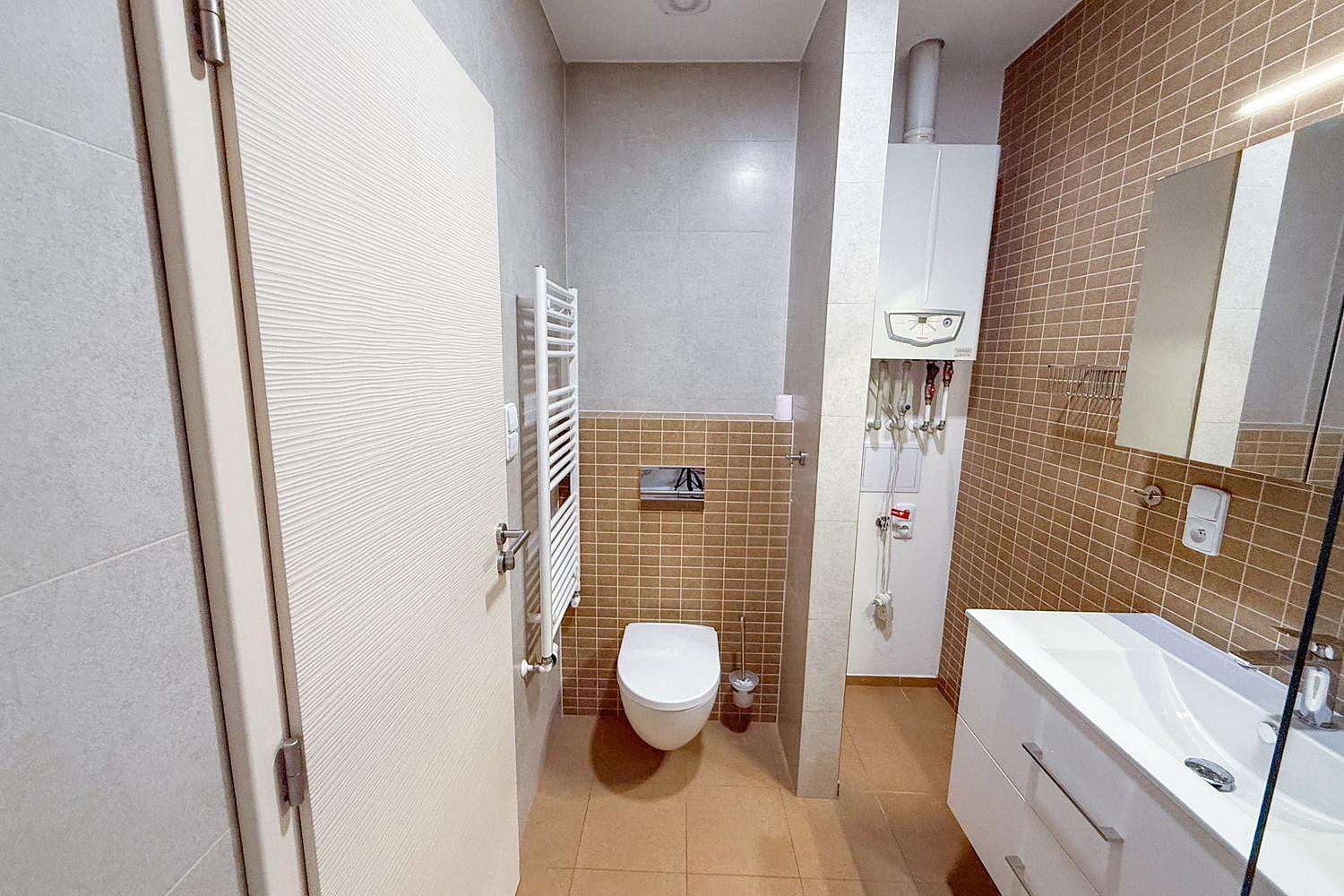 Vytápění a ohřev vody zajišťuje vlastní plynový kondenzační kotel, což je velkou výhodou – majitel si může náklady a teplotu regulovat přesně podle sebe.