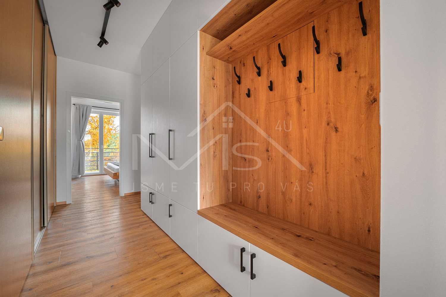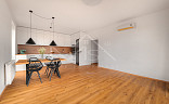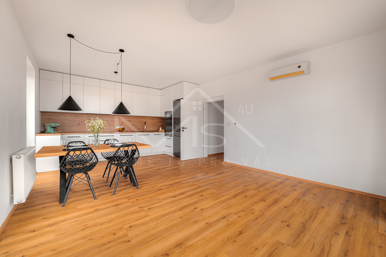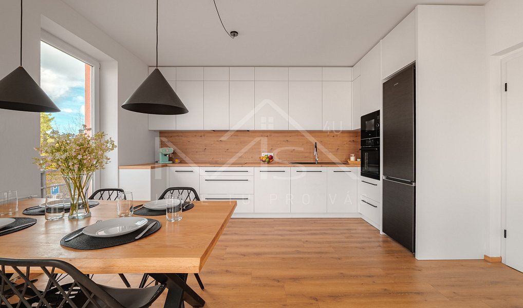 Byt je vybaven moderním nábytkem, vestavěnými skříněmi i kvalitními spotřebiči, včetně klimatizace v obývacím pokoji, která zajišťuje komfort i v letních měsících. Vše je připraveno k okamžitému nastěhování bez nutnosti dalších investic.