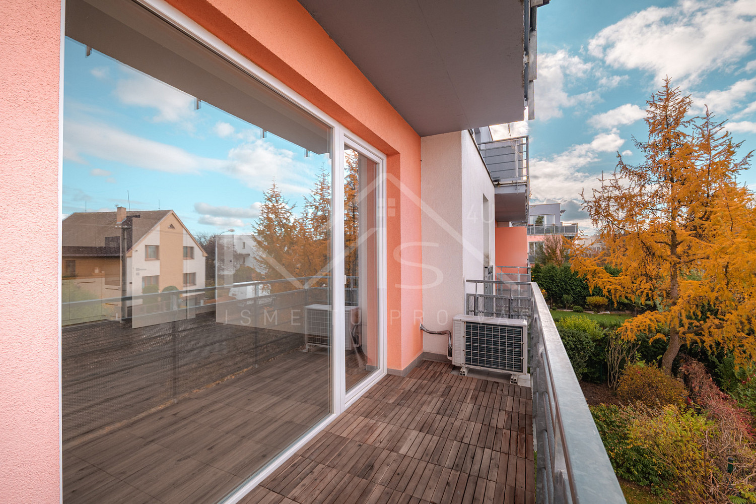 Byt se nachází ve 2. nadzemním podlaží cihlového domu s výtahem. K bytu náleží dva prostorné balkóny, sklepní kóje v přízemí a možnost pohodlného parkování přímo vedle domu.