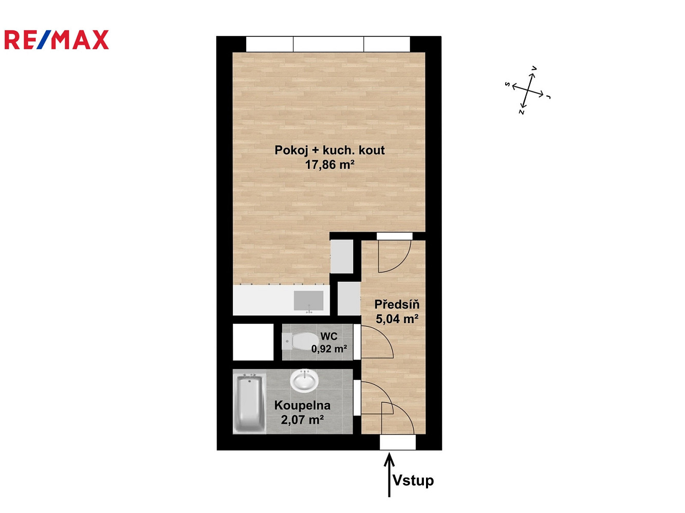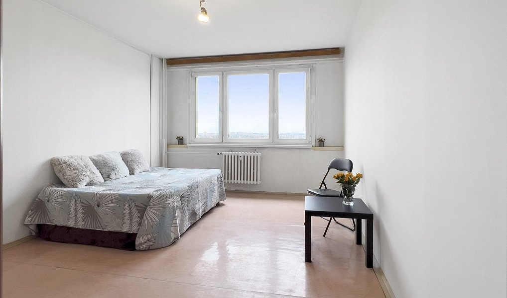 Byt 1+kk (celkově 27,09 m²) se nachází v 10. patře, což zaručuje krásný výhled. Orientace okna je na příjemnou východní stranu.