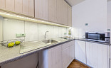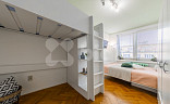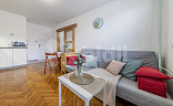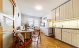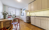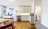 Menší byt má pěknou kuchyňku, přístup na vlastní lodžii s výhledem do vnitrobloku a velké vestavěné skříně. V koupelně je vana a místo pro pračku. Toaleta je samostatná.