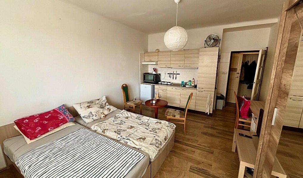 Jako přímý majitel nabízím k prodeji bytovou jednotku 1+kk o výměře 28 m² ve 3. NP (dle plánu jednotka č. j. 11 ve druhém patře). Samotná bytová jednotka prošla před 4 lety kompletní rekonstrukcí, včetně nových rozvodů vody, odpadů, elektro, podlahy. V bytě je kvalitní kuchyňská linka. Byt má vytápění plynovými kamny WAF a ohřev vody přes el. bojler. Díky kvalitnímu zateplení domu jsou náklady na vytápění minimální a to záloha na elektro 1 200,- Kč a na plyn 500,- Kč. Za samotnou bytovou jednotku jsou další náklady SVJ do 1 500,- Kč měsíčně.