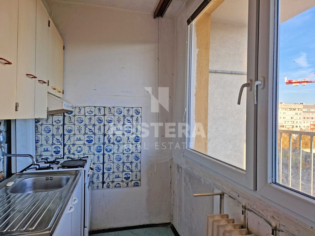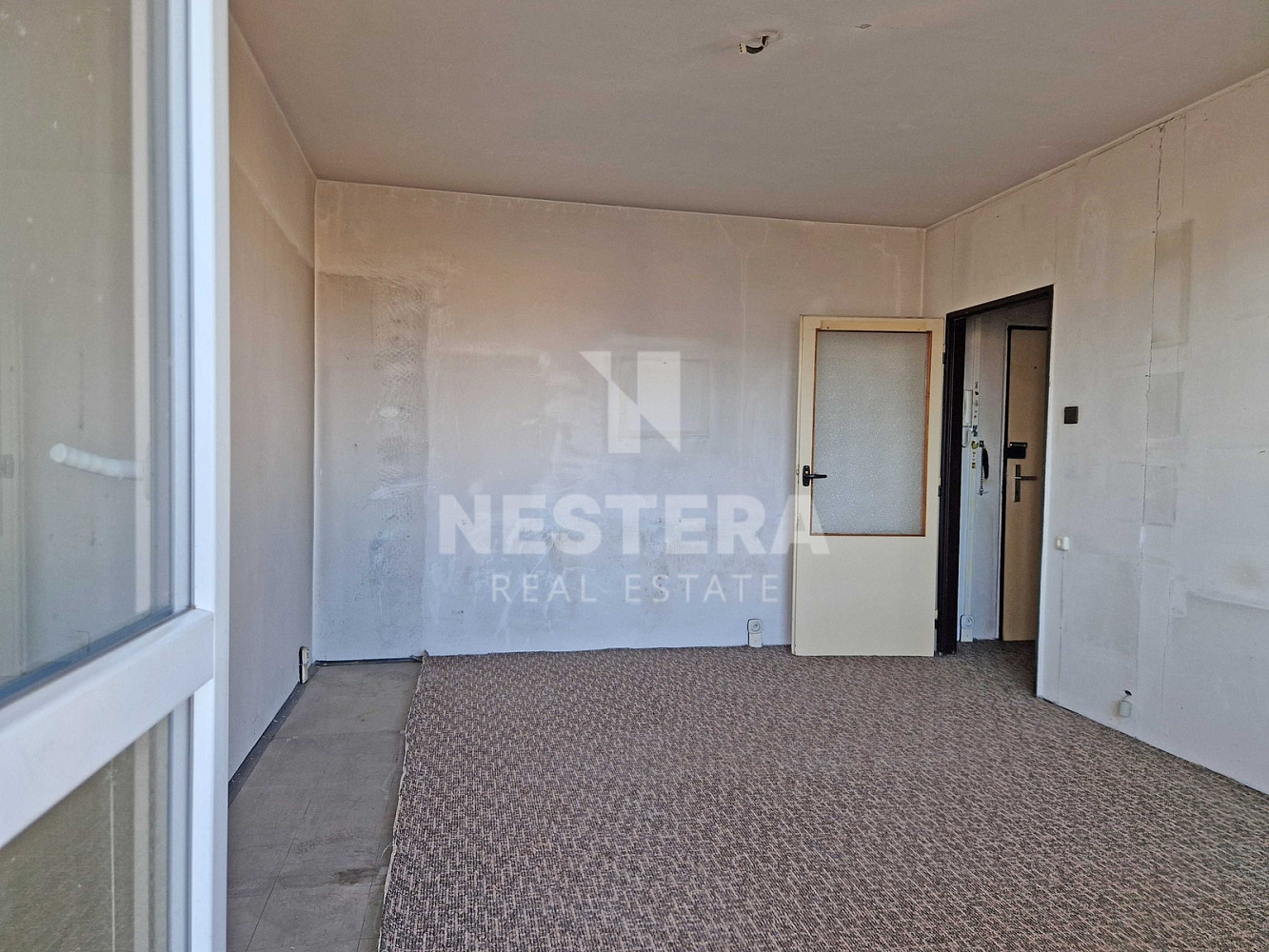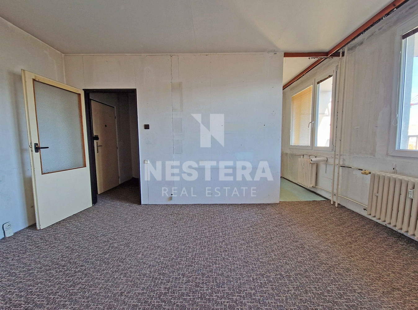 Bytová jednotka je dispozičně rozdělena na předsíň, obývací pokoj, kuchyňský kout, koupelnu s toaletou. Obývací pokoj poskytuje vstup na prostornou lodžii, ze které je pěkný výhled. Dále je k dispozici komora na patře, přímo před bytem, jako úložný prostor. V současné době je byt připraven na rekonstrukci dle představy budoucího majitele. Jedná se o byt v osobním vlastnictví. Vytápění jednotky je řešeno centrálně dálkově.