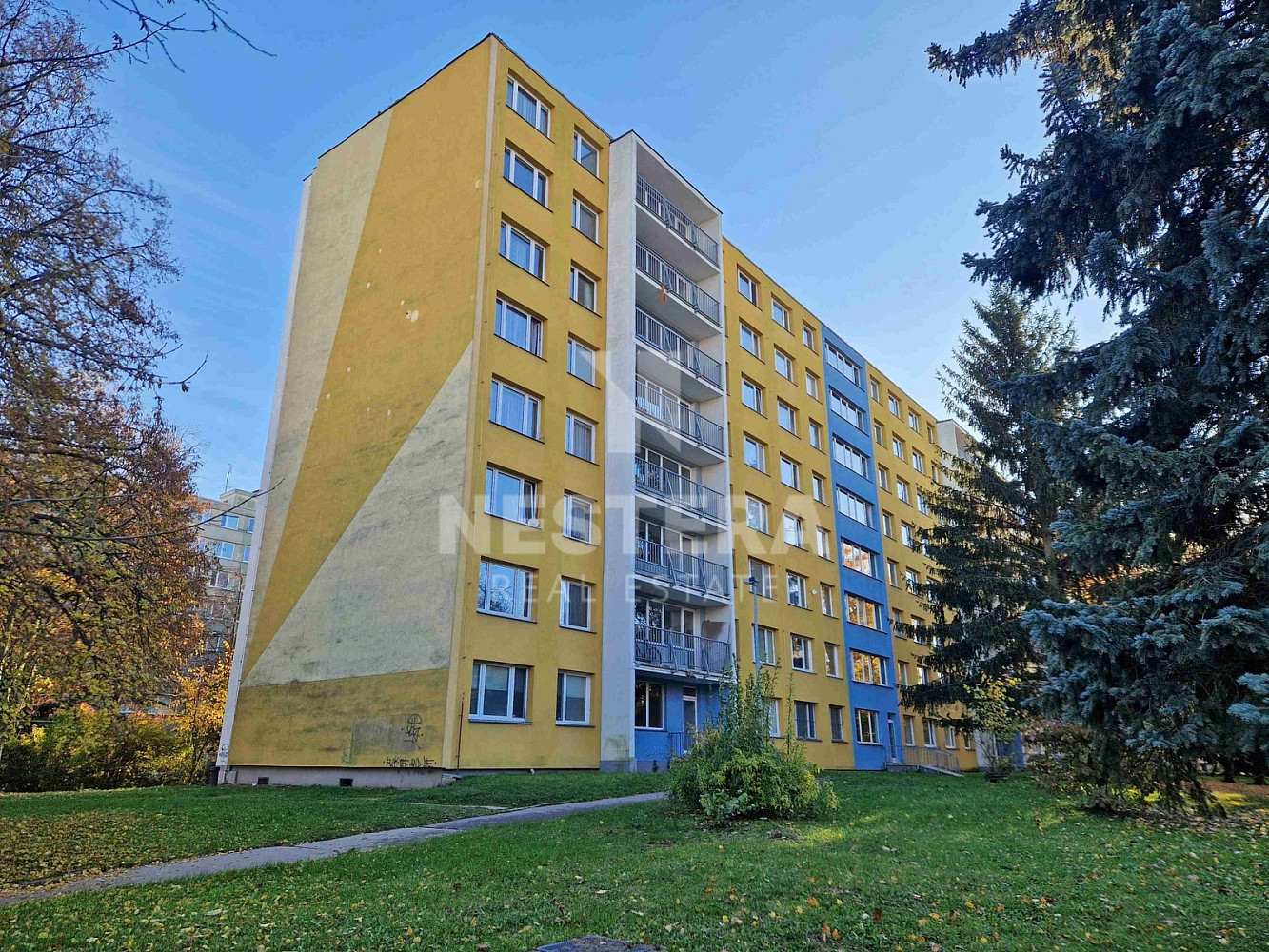 Byt se nachází v 7. nadzemním podlaží udržovaného, zatepleného, panelového domu zasazeného do zeleně a mimo hlavní dopravní tah. Takže bydlení zde poskytuje klid a zároveň dobrou dopravní dostupnost. Dle nově zpracovaného průkazu energetické náročnosti spadá budova do klasifikační třídy „B“.