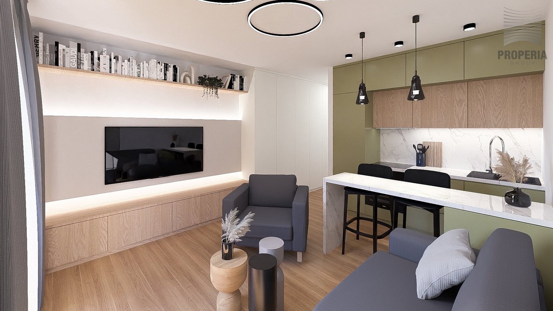 Byt je součástí harmonicky laděné budovy, kde hrají hlavní roli přírodní odstíny, vzdušnost a promyšlené