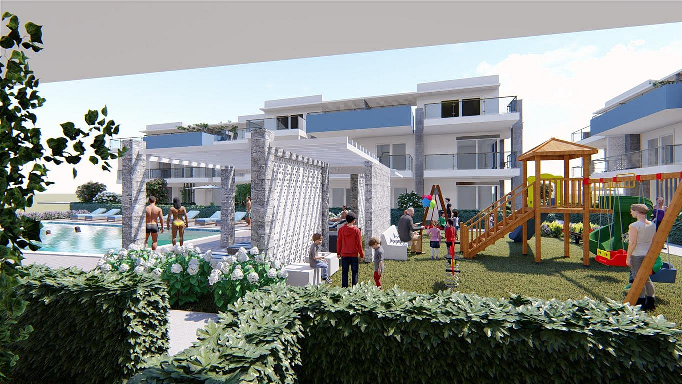 Komplex nabízí dětské hřiště, bazén a relaxační část. Apartmán je vyzdobený ve světlých, klidných barvách, dispozice je ergonomická a plně odpovídá vysokým standardům. Každý apartmán komplexu má vlastní předzahrádku 83 m². Při stavbě a dekoraci bytů se používají materiály vysoké evropské kvality.
