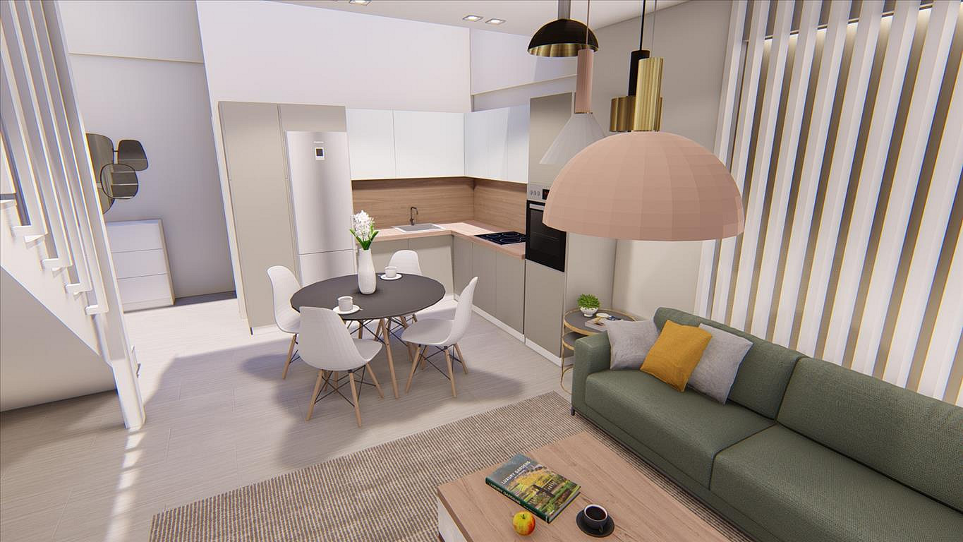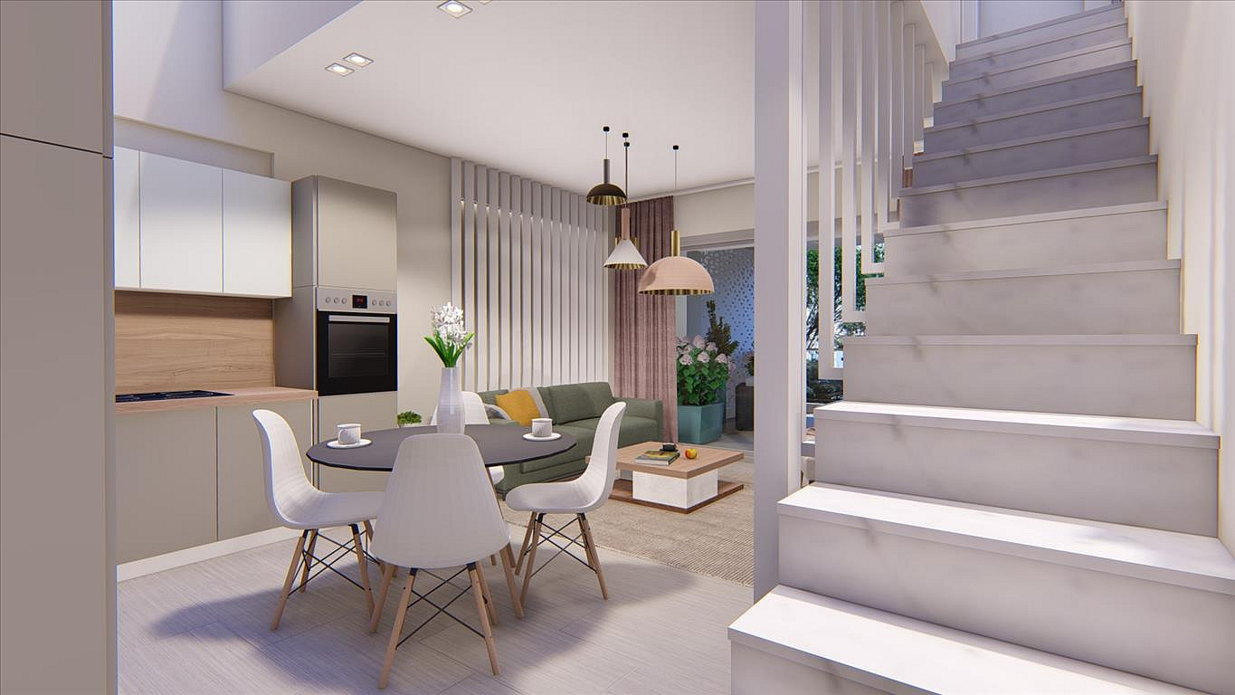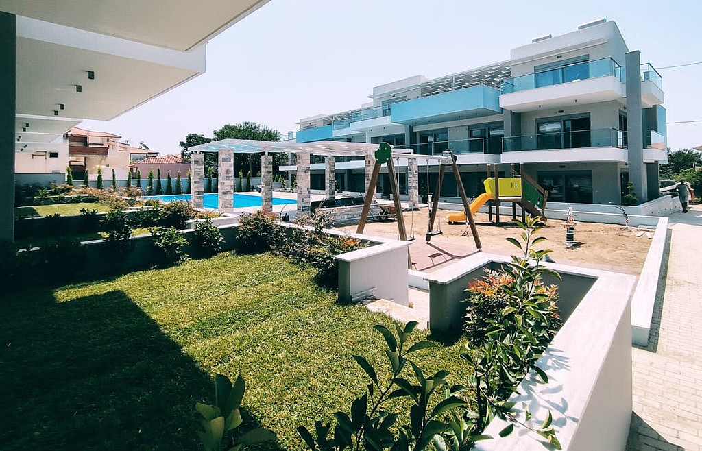 Na prodej nový moderní "chytrý" mezonetový apartmán 63 m² - 2+kk s terasami a předzahrádkou. "Sithonia Apartments" je komplex apartmánů v ekologicky čistém přímořském letovisku Řecka. Projekt, který je ve výstavbě se nachází v oblíbené turistické vesnici na Chalkidiki, sestává se ze tří budov, nabízí souhrn apartmánů různých velikostí a dispozic. Datum dokončení projektu: 31.09.2025.