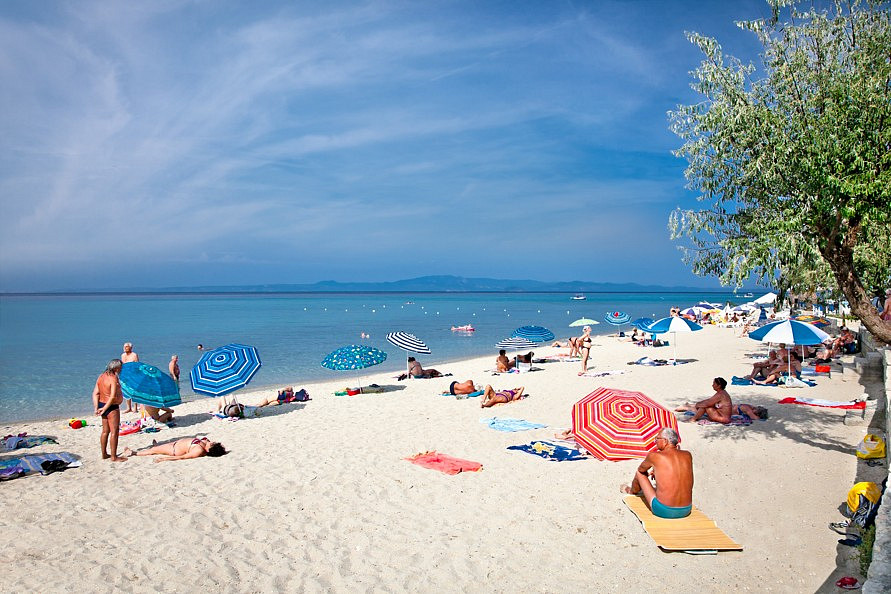 Tato oblast je je oblíbené letovisko na poloostrově Chalkidiki. Obec se nachází 37 km od vesnice Nea Moudania. Vzdálenost od letiště v Soluni je 90 km. Hlavní pláž se táhne 4 km, její šířka je 10-15 m. Moře je zde téměř vždy klidné a vstup do ní je velmi mírný a plochý. Ideální pro rodiny. Díky svým charakteristikám a vynikajícím podmínkám je tato pláž každý rok oceněna modrou vlajkou EU.