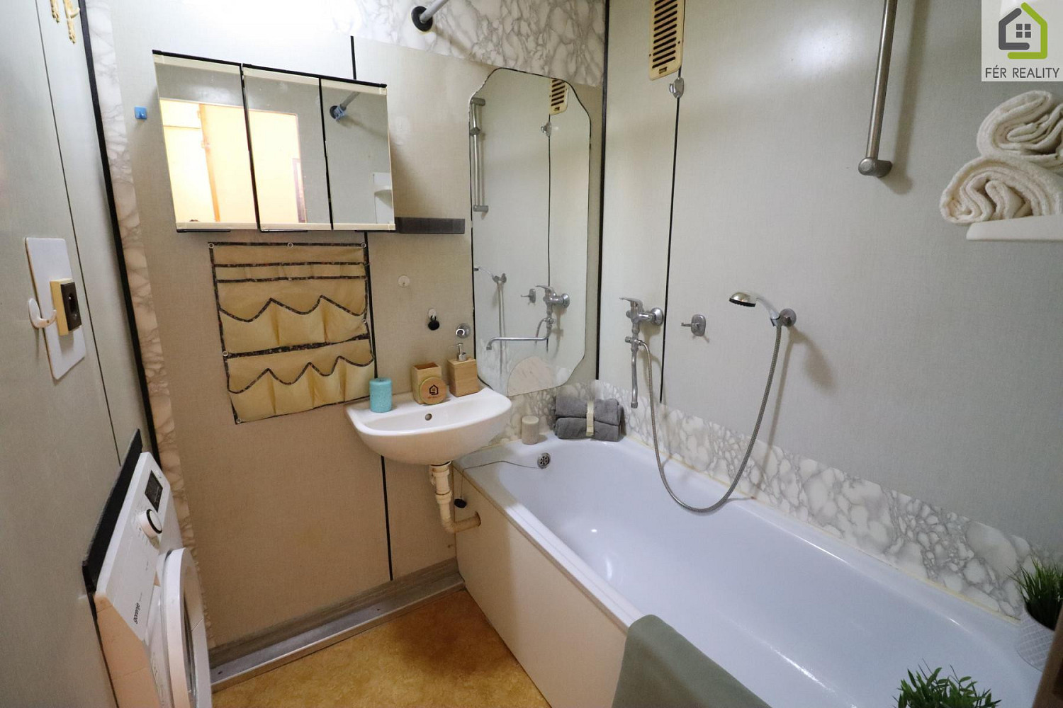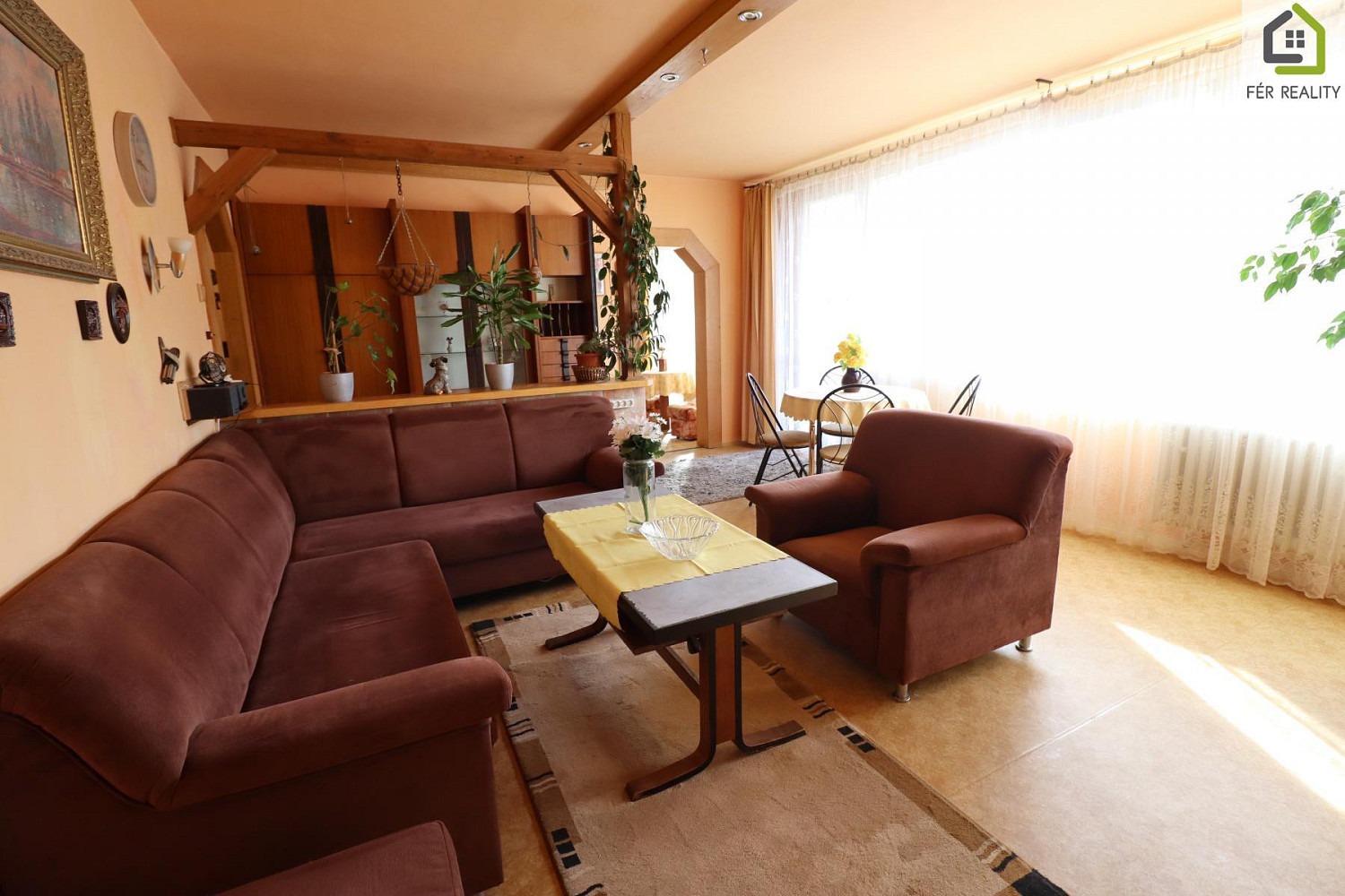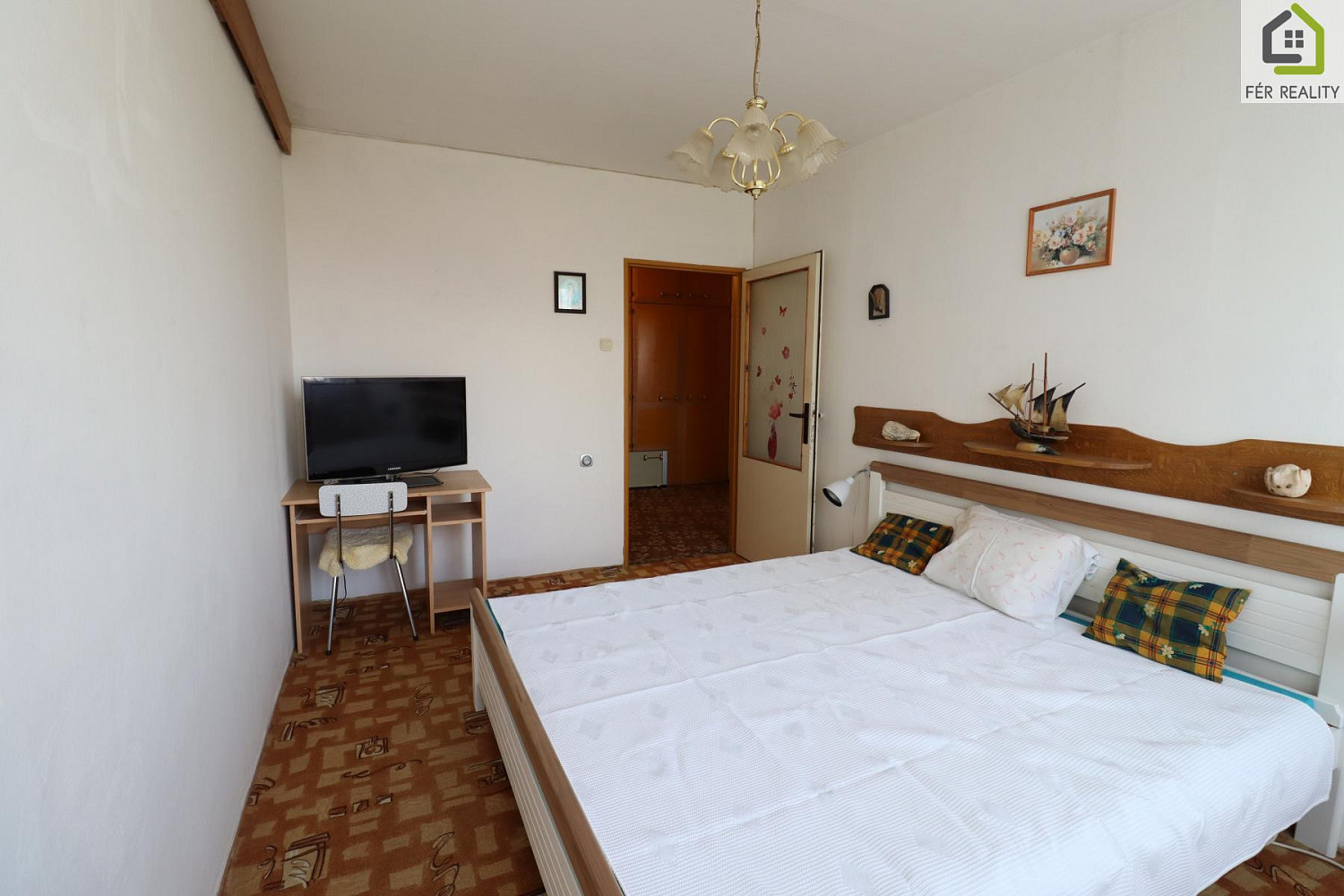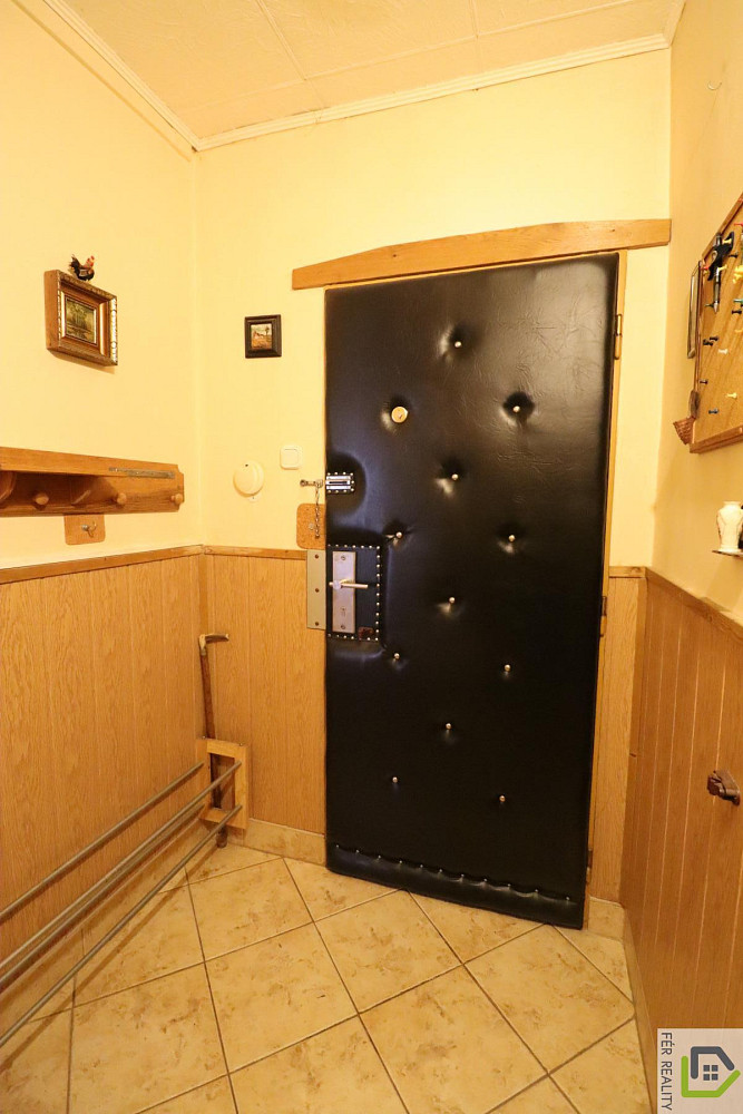 Realitní kancelář Fér reality Vám zprostředkuje možný prodej velkorysého bytu 3+1 o celkové výměře 90 m² obytné plochy se dvěma lodžiemi. Byt se nachází ve druhém patře. Jednotka je v původní stavu vhodná k realizaci vlastních představ. Skládá se z kuchyně (vstup na lodžii), obývacího pokoje (vstup na druhou lodžii), ložnice, dalšího pokoje, dvou komor, koupelny, toalety a prostorné chodby. V celém bytě jsou plastová okna. Na podlahách je kombinace pvc a dlažby. Výhodou je vlastní fotovoltaika, která je umístěná na střeše (pro celý vchod). Topení a ohřev vody je zajištěn dálkově. Elektřina v bytě je částečně v hliníku a v mědi. Stoupačky v bytě jsou v plastu. Bytu náleží k užívání prostorný sklep (6 m²). Dále zde najdeme prádelnu, sušárnu a kolárnu.