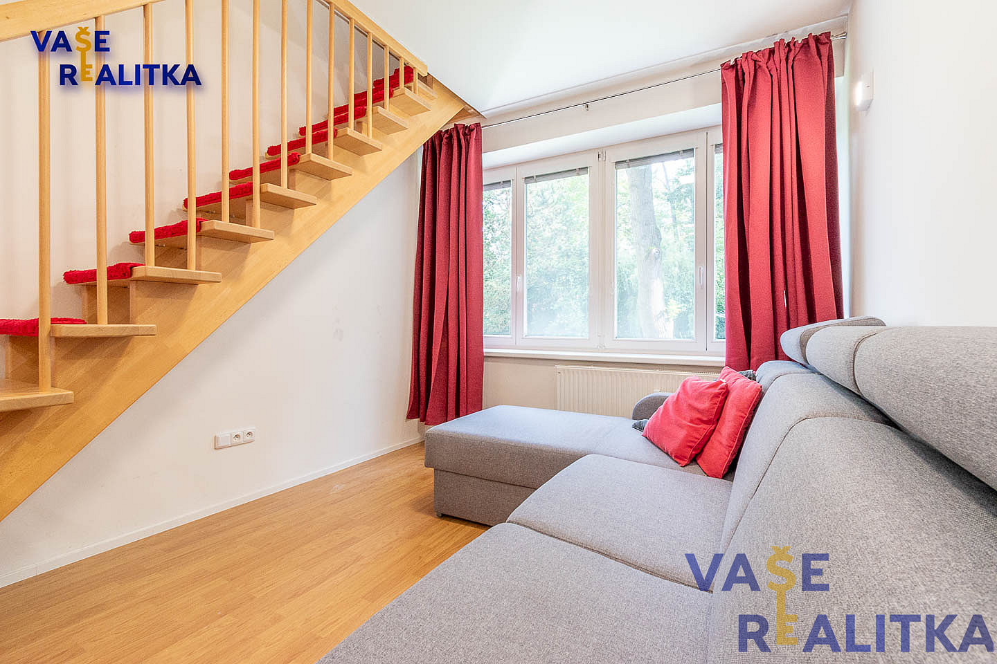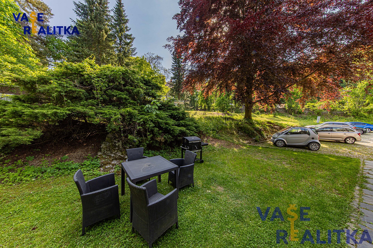 Byt o výměře 35 m² se nachází v 1. a 2. NP. Součástí prodeje je také parkovací místo (+ 250.000,- k ceně bytu, nutné dokoupit), menší sklep a podíl na rozsáhlé zahradě o ploše více než 6 600 m², která je k dispozici pro relaxaci i volnočasové aktivity. O údržbu se stará vlastní zahradník – sekání trávy tedy není Vaší starostí.
