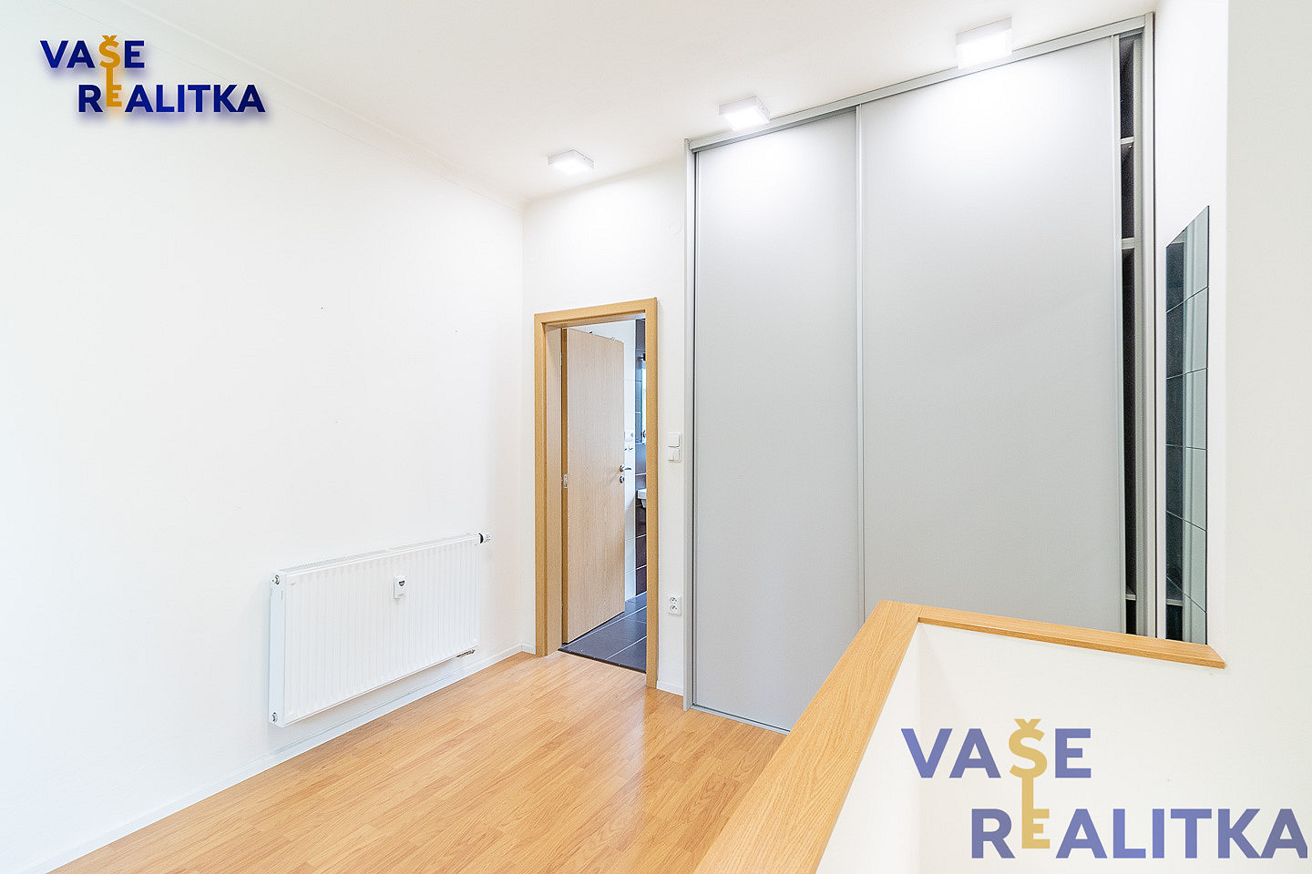 Byt je dispozičně řešen: vstup, kuchyně (indukční deska, myčka, lednice s mrazákem) spojená s obývacím pokojem, schody do 2. NP, kde se nachází ložnice s velkou vestavěnou skříní a koupelna se sprchovým koutem a WC. Dům pochází z 30. let 20. století a celý objekt včetně bytových jednotek prošel vkusnou rekonstrukcí. Jedná se o architektonicky výjimečnou budovu, která je zapsána mezi národní kulturní památky České republiky. Tato nemovitost představuje výjimečnou příležitost pro bydlení nebo jako investici s rostoucím výnosem z pronájmu a tržní cenou nemovitosti.