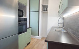 Byt nabízí dostatek prostoru i úložných míst. Součástí prodeje je také nábytek vyrobený na míru: