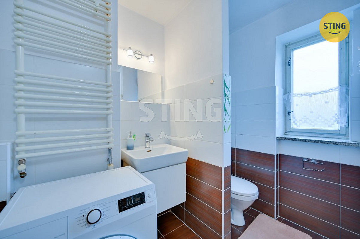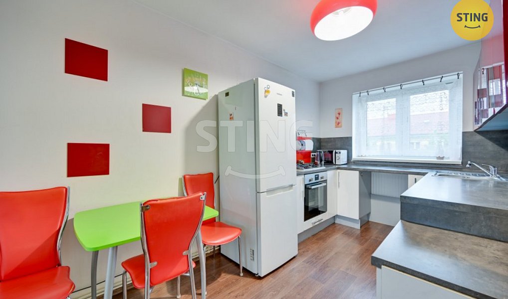 S výhradním souhlasem majitele nabízíme ke koupi byt v osobním vlastnictví a s vlastním plynovým kotlem. Dispoziční řešení je následující: vstupní chodba s úložnou komorou, koupelna, WC, prostorný obývací pokoj s jídelní částí a kuchyňskou linkou. Samostatná ložnice má přístup z chodby nebo právě z tohoto pokoje. K dispozici je také sklep. Další výhodou tohoto bytu je situování oken a to z obývacího pokoje a ložnice do zeleně. Dům je cihlový, 3-podlažní, byla zde revitalizace bytového domu.