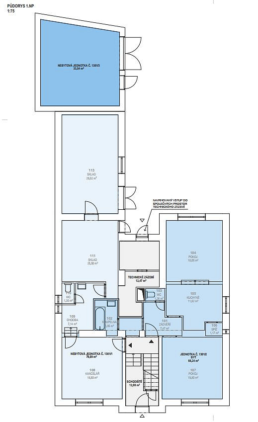 - v přízemí domu se nachází ateliér o výměře 79 m² vhodný k bydlení i jako sídlo firmy