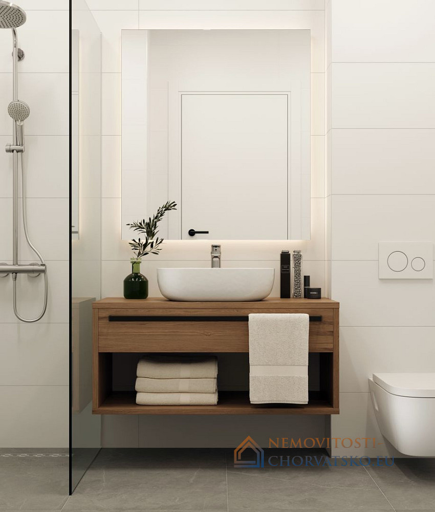 ISTRIE, UMAG - Nadstandardní byt 3+1 s výtahem - Luxusní novostavba S hrdostí Vám představujeme exkluzivní třípokojový byt s výtahem v jedné z nejprestižnějších novostaveb v Umagu. Tento prostorný byt o celkové ploše 108 m² se nachází ve třetím patře tohoto impozantního bytového domu. Byt nabízí eleganci a komfort, sestává z prostorného obývacího pokoje s moderní kuchyní, tří luxusních ložnic, dvou elegantních koupelen a dvou prostorných teras. K bytu náleží úložná plocha 3,44 m², jedno venkovní parkovací stání a jedno garážové stání, díky čemuž je váš každodenní život mimořádně praktický. Tento bytový dům byl postaven s profesionálním přístupem a smyslem pro detail. Budova je navržena ze železobetonové monolitické konstrukce s mezaninovými panely pro dodatečnou bezpečnost a stabilitu. Uvnitř bytů jsou příčky tvořeny dvojitou sádrokartonovou krytinou, která zajišťuje vynikající tepelnou a zvukovou izolaci. Fasádní obklad je v systému ETICS s tepelnou izolací tloušťky 10 cm zajišťující energetickou náročnost. Vysoce kvalitní PVC truhlářství nové generace s elektrickými žaluziemi poskytuje další pohodlí a bezpečnost. Každý byt je vybaven špičkovým multisplitovým systémem vytápění a chlazení, který zajišťuje perfektní teplotu a hospodárnost. Byty mají vlastní měřiče vody a elektřiny, užitková voda je ohřívána elektrokotlem. V každém bytě je navíc telefon, anténa, TV a internetové připojení, pro větší bezpečnost je vestavěný videovrátný. Byt je pokryt kvalitními parketami v pokojích a obývacím pokoji, chodby a chodby jsou vybaveny elegantní dlažbou. Tento byt s nejkvalitnějšími materiály a vybavením poskytuje nejen mimořádný komfort pro bydlení, ale je také ideální k pronájmu pro turistické účely. Plánované dokončení výstavby je v polovině roku 2025, což Vám umožní rychle využívat všech výhod tohoto luxusního bytu. Poloha je perfektní, pouhých 700 metrů od moře a centra Umagu, což vám umožní vychutnat si všechna kouzla tohoto krásného středomořského města. Obecná specifikace objektu: Přízemí: - 1x garsoniéra se zahradou - 18x apartmány s 1 ložnicí, obývacím pokojem, terasou a zahradou - 5x apartmány se 2 ložnicemi, obývacím pokojem, terasou a zahradou - 43x komora 1. patro: - 26x apartmány s jednou ložnicí, obývacím pokojem, terasou a zahradou - 7x apartmány se dvěma ložnicemi, obývacím pokojem, terasou a zahradou - 16x komora 2. patro: - 26x apartmány s jednou ložnicí, obývacím pokojem, terasou a zahradou - 7x apartmány se dvěma ložnice, obývací pokoj, terasa a zahrada - 16x komora 3. patro: - 24x apartmány s jednou ložnicí, obývacím pokojem a balkonem - 7x apartmány se dvěma ložnicemi, obývacím pokojem a balkonem - 1x apartmán se třemi ložnicemi, obývacím pokojem, balkonem a lodžií - 14x sklad Podzemní garáž: - 74 parkovacích stání - 33 skladovacích míst Parkování v zemi: - 26 krytých stání - 82 nekrytých stání Nenechte si ujít příležitost stát se hrdým majitelem tohoto luxusního bytu v Umagu a užít si exkluzivní životní zážitek v jedna z nejatraktivnějších novostaveb na trhu. Pro další informace a prohlídku bytu kontaktujte naši RK ještě dnes.