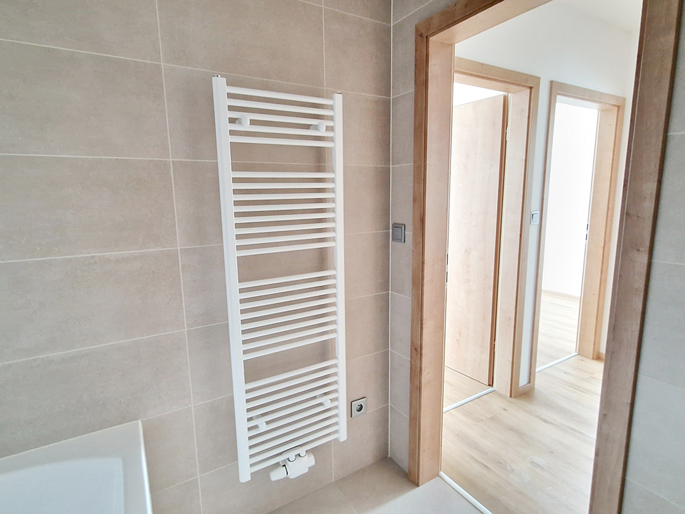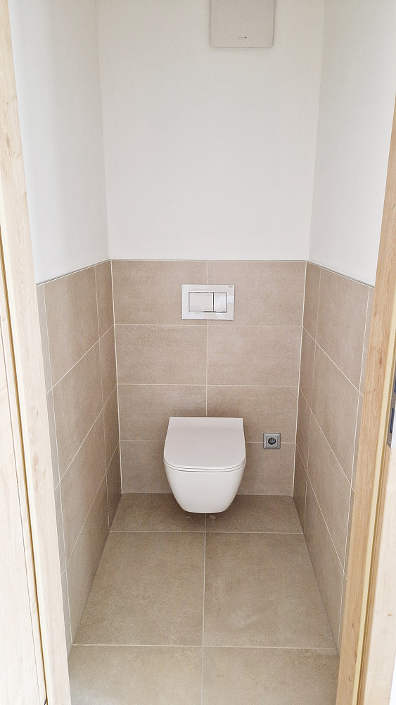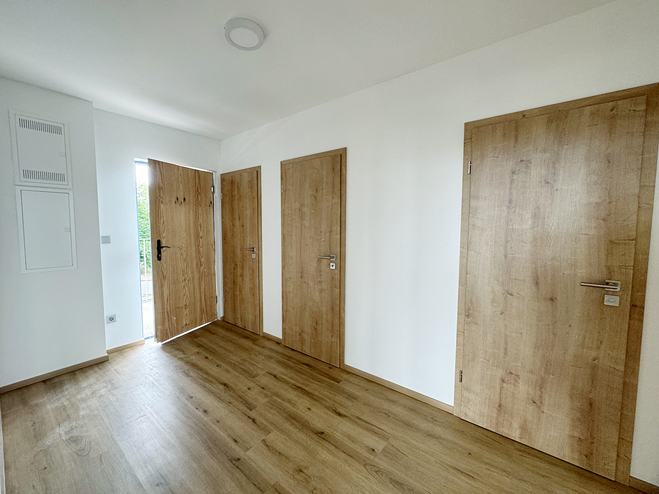 Moderní vchodové dveře v pastelových barvách, kvalitní vinylové podlahy, odolné interiérové dveře CPL Hörmann, velkoformátové obklady, zásuvky a vypínače v barvě hliníku, to je jen něco ze standardů moderního bydlení u Prahy v nejúspornější energetické třídě A. V sousedství domu se nacházejí nákupní možnosti, škola, školka, sportoviště, kavárna, lékárna, vlaková i autobusová stanice a příroda na dosah.